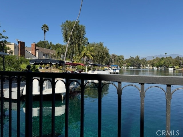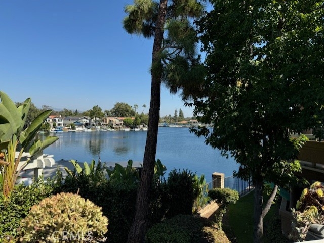 Panoramic Lake front home with Saddleback Mountain range as the background view. It is located in the prestigious gated community of The Shores at Lake Forest and provides resort style living. This upgraded condominium provides Bamboo flooring throughout with Travertine flooring in the bathrooms. Views can be enjoyed from 9 out of the 11 windows, giving the property a wide and open feel with plenty of light. Master Bedroom suite with vaulted ceiling includes the views through a window and a sliding door opening to the wrap-around patio, overlooking gorgeous lake and mountain sights. Master Bath with vaulted ceiling includes a large skylight and a Travertine spa-like open shower adjacent to an over-sized 8-jet soaking tub and separate vessel-style glass and cherry-wood vanities. Wild Sea Green Quartzite Granite counter tops and back-splash in the kitchen, guest bathroom and laundry room. Slate fireplace finished to the ceiling features cherry-stained railroad tie for its mantle. There are 2 single-car garages with one being attached. The main garage has high power outlet, can easily be modified for EV charging. This property sits nestled in the quiet corner of the lake directly across from The Beach and Tennis Club and away from the nearby shopping center and lake front Montessori pre-school. There is a pool and Jacuzzi with bathrooms and showers onsite. Membership to The Lake Forest Beach and Tennis Club is inclusive. The club provides classes and clubs to join and lake access for boats and fishing from the common areas. There is a preschool onsite next to the gym. The club also boasts tennis courts, pickleball, basketball, sand volleyball, adult pool with poolside bar, Jr. Olympic pool, baby pool and a semi-indoor Jacuzzi. The large lagoon is surrounded by a walkway and dock with the club side featuring a beach that provides hours of fun for everyone and lounging in the sun.
