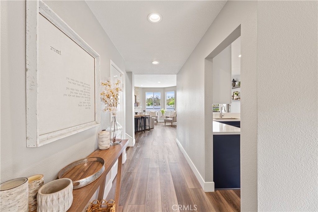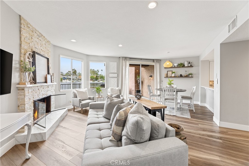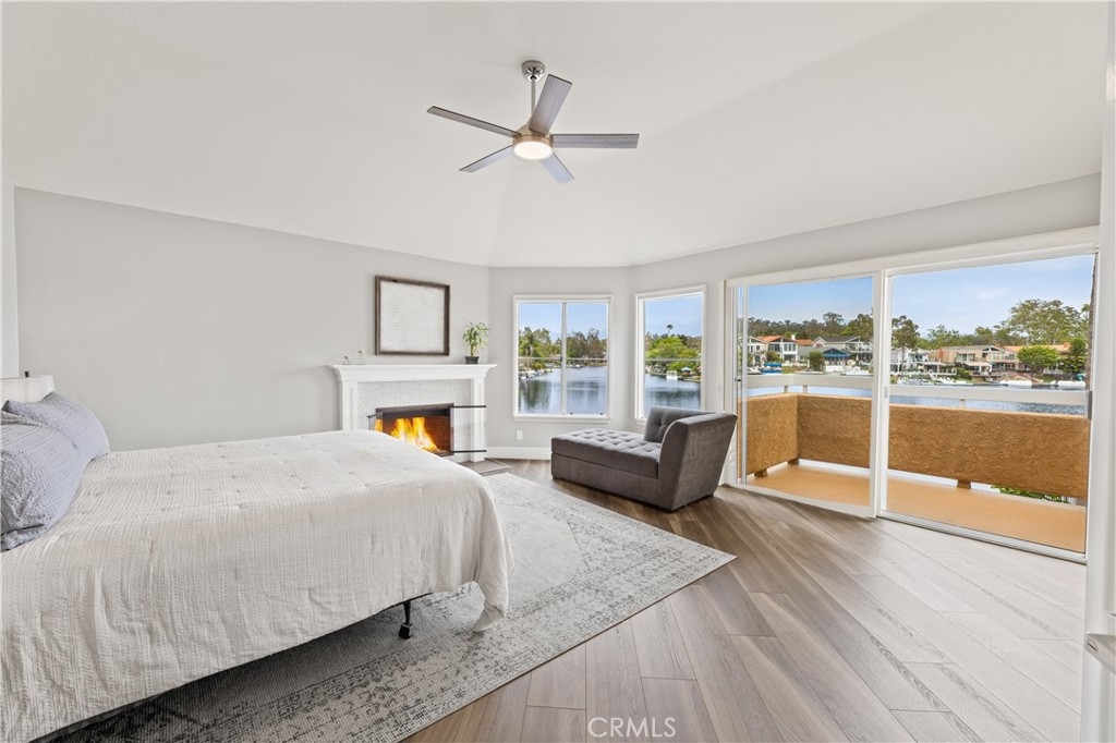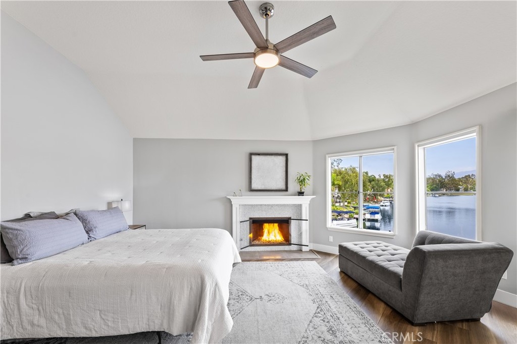 Discover the pinnacle of lakeside luxury in this beautifully upgraded 3-bedroom, 3-bathroom townhome in the gated community of Lake Forest Shores. Set against the serene backdrop of Lake Forest's private lake, this 1,928 sq ft home offers spectacular water views from nearly every angle—bringing a sense of calm and natural beauty to your everyday life. Step inside to a bright, open-concept layout enhanced by wide-plank luxury vinyl flooring, plantation shutters, and expansive windows that perfectly frame the shimmering lake. The spacious living room features a cozy fireplace and a large sliding glass door that opens to your private patio—ideal for morning coffee or sunset dining. The fully remodeled kitchen is equipped with stainless steel appliances, a wine fridge, modern cabinetry, and an oversized sink. Whether you're cooking, dining, or relaxing, the tranquil water views create a seamless indoor-outdoor living experience. Upstairs, the master suite is a true retreat with breathtaking lake views, a private balcony, vaulted ceilings, a second fireplace, a walk-in closet, and a spa-inspired en-suite bathroom with dual sinks and a custom dual-head shower. A second en-suite bedroom and a versatile third bedroom round out this flexible and functional floor plan. Enjoy exclusive access to the Lake Forest Beach & Tennis Club, including pools, spa, tennis courts, pickleball, a gym, and lakeside community events. The condo complex also offers its own private pool for residents. Whether you're seeking a peaceful sanctuary or a lively waterfront lifestyle, 22826 Sailwind Way delivers. Don’t miss your chance to own one of the rare homes with uninterrupted lake frontage and year-round views that feel like a vacation every day.