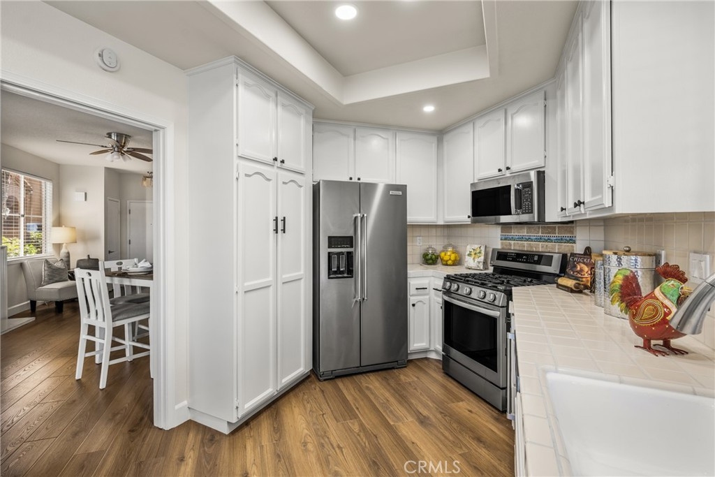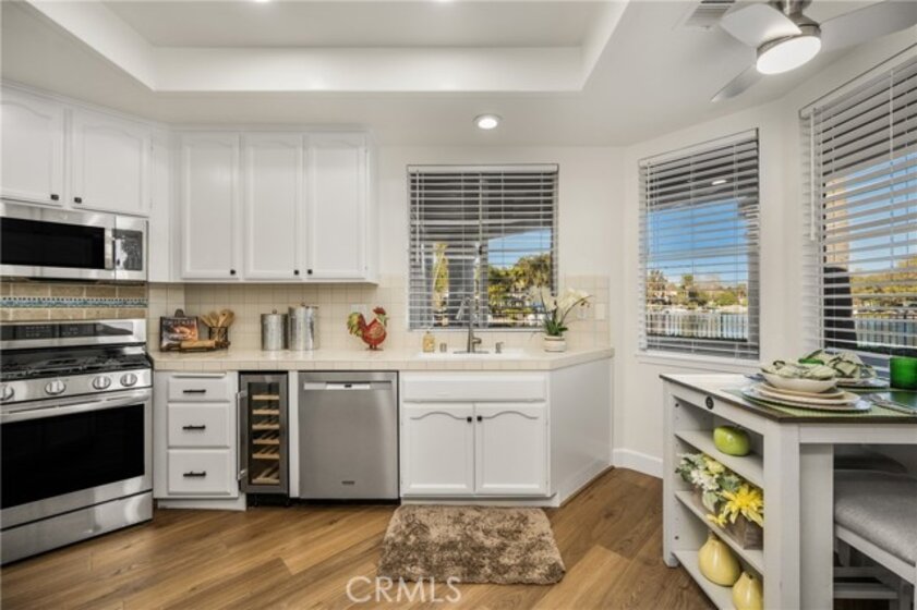 Looking for a home with breathtaking lake views from almost every room? Then don't miss this beautifully updated 2-bedroom, 2-bath residence with 1,288 sqft of bright living space, all on one level. Perfectly situated in the gated community of Lake Forest Shores, this home delivers a rare blend of serene waterfront living & modern comfort with tasteful upgrades. The updated kitchen features refreshed white cabinetry with new hardware, recessed lighting & newer appliances. An intimate dining area in the kitchen is the perfect place for your morning coffee while enjoying the lake views. Newer luxury vinyl flooring & baseboards are found throughout the home, creating a clean, cohesive look. LED lighting has been installed throughout, in addition to ceiling fans in the family room, primary bedroom & bath & kitchen, providing comfort & energy efficiency year-round. Fresh interior paint in some rooms and newer window treatments throughout, enhance the bright & welcoming atmosphere. Primary bath has been updated featuring refreshed cabinets with new hardware, a professionally refinished countertop, tub, shower & their surrounds with upgraded lighting. The hall bath features a professionally refinished tub & surround, new vanity & recessed lighting. A separate laundry room offers newer paint, storage & direct access to one of your 2 single-car garages. Step outside to your private patio and take in tranquil lake views, an ideal setting for outdoor dining or enjoying a peaceful sunset. Added privacy planters complement the soothing water backdrop and gentle breezes that create this relaxing retreat. Meticulously maintained & move-in ready, this home offers modern upgrades, scenic beauty, and access to exceptional community amenities. Residents enjoy membership to the Lake Forest Beach & Tennis Club with everything it offers, including a private lake with sandy beaches, multiple swimming pools, clubhouse, tennis & pickleball courts, scenic walking paths, playgrounds & year-round community events. It's truly a resort lifestyle right outside your door! Whether you’re seeking a full-time residence or a weekend getaway, this home delivers an unmatched lakeside lifestyle in one of Orange County’s most desirable communities. Welcome home!