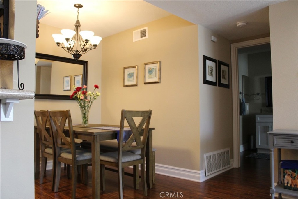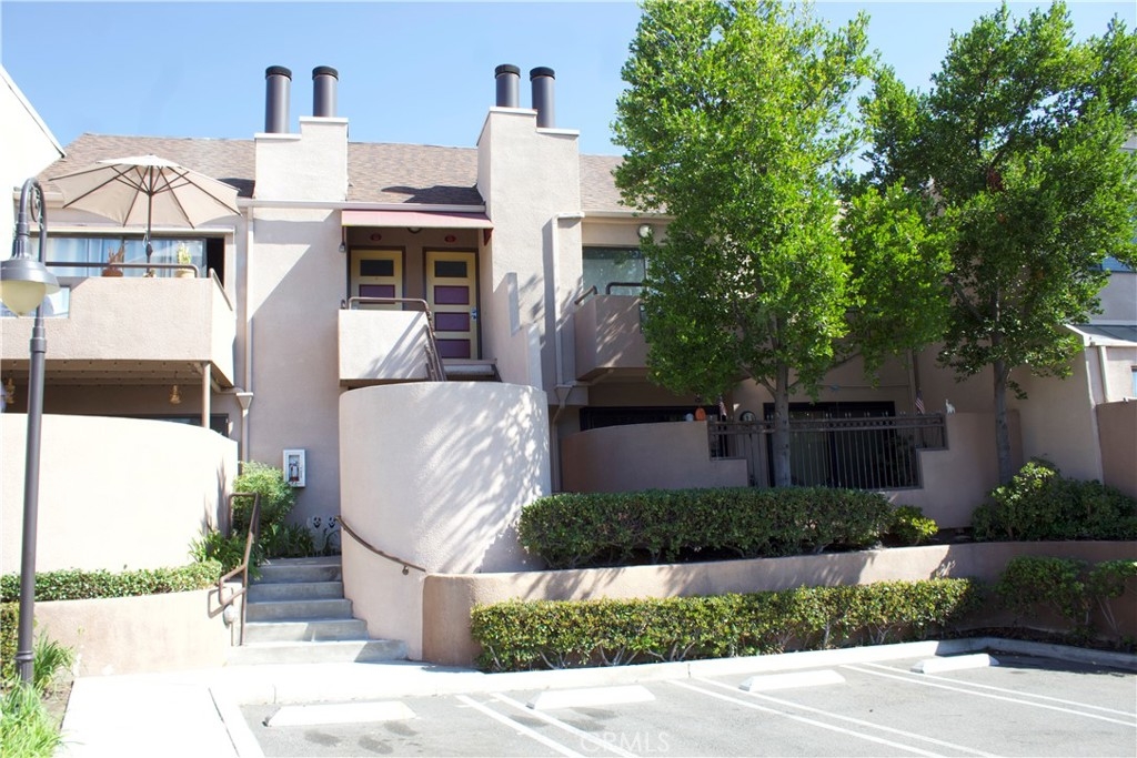 Charming second-floor condo in a tranquil neighborhood, featuring a spacious open-plan living room with a cozy fireplace, vaulted ceilings, and separate dining area. The master bedroom boasts a walk-in closet and private bath with dual sinks and a quartz countertop. Additionally, there is a loft-style bedroom and in-unit laundry facilities. Upgraded with gleaming hardwood floors, new cabinets and stainless steel appliances in the kitchen, and a remodeled bathroom. Enjoy outdoor living with two private patios, one off the living room perfect for barbecuing and the other, a rooftop deck ideal for entertaining. Conveniently located near a detached single-car garage, providing ample parking and storage. The Le Parc community boasts three sparkling pools and spas, surrounded by lush landscaping. Experience luxurious living in this sought-after community.