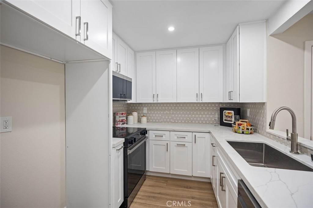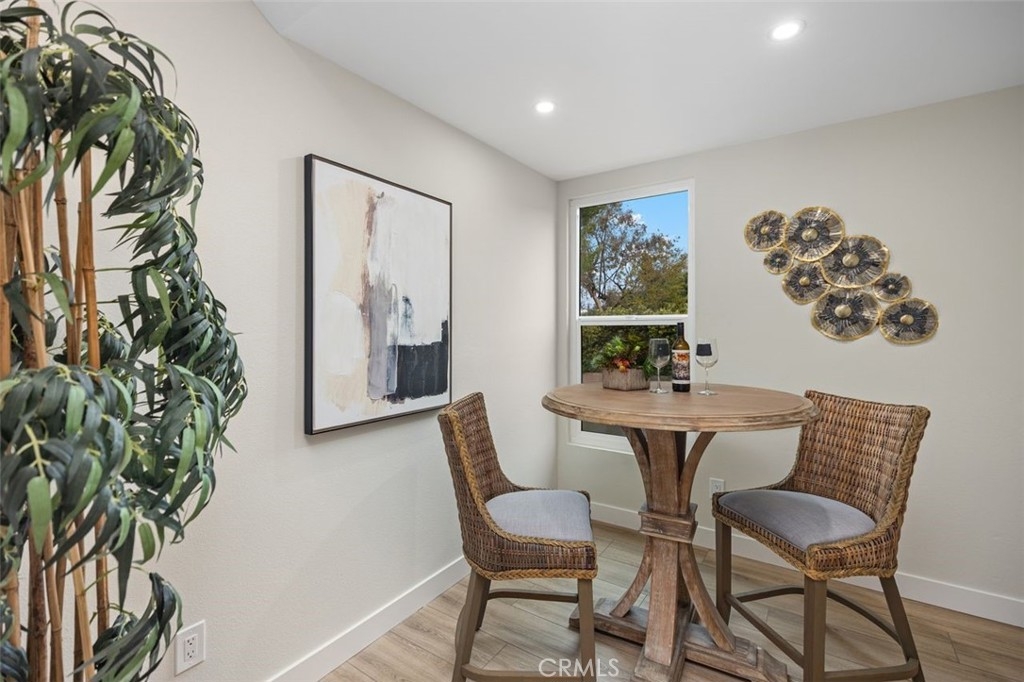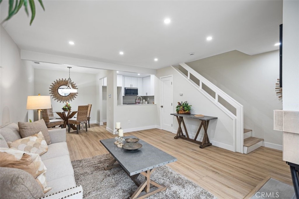 This is a completely redone attractive home in the community of Le Parc. The unit has privacy as it is at the back of the complex and faces a flower perimeter wall. When you walk in, there is an enclosed courtyard area. New flooring, new paint, baseboards, lighting and fixtures are just some of the main living area improvements. The kitchen has new counters, new stainless steel appliances and new cabinets. Both the bathrooms are remodeled just recently with quality tile and fixtures. Powder room is conveniently located downstairs and there is a cozy fireplace. The formal dining room adjoining the kitchen is a great place to entertain. The skylights in the living area with enclosed courtyard, make the downstairs very light and bright. Upstairs, there is a large primary bedroom suite and a multipurpose flex area that can be a den/office/nursery/library. There is also an area for stackable laundry. This home has 2 car detached garage about 100 feet further. The association has pool, sauna and BBQ areas and a charming architectural style. Conveniently located near freeways, schools and Arbor shopping complex in the city of Lake Forest.