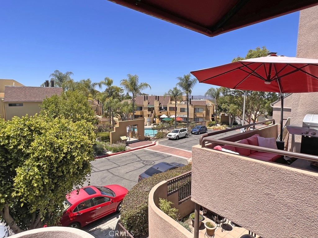 Very rare 3 bedroom condo in Le Parc. Located in a great location just steps away from the resort-like pool. Beautiful sunset views and views of the mountains. Upgraded a couple of years ago include vinyl plank flooring, new baseboards, scraped ceilings and white cabinets. Quartz counters and modern backsplash accent the kitchen. Stainless steel appliances and an eating counter. Open concept includes a good sized living area and dining area. Wonderful patio with great seating area and room for a bbq. Two good sized bedrooms are down with baths, upstairs is a large bedroom and another large private patio. A great place to sit and sip a glass of wine and enjoy the sunset. Private inside laundry and a two car detached garage with plenty of street parking makes this the perfect place to call home.