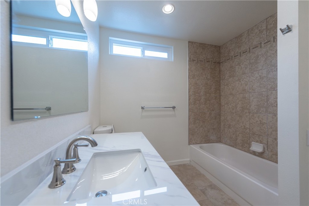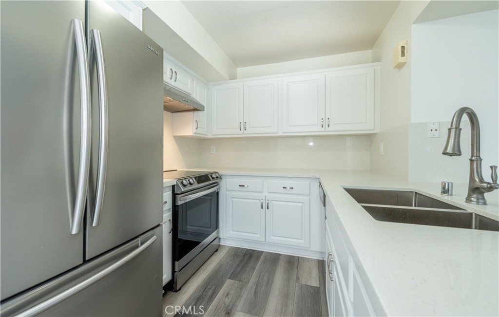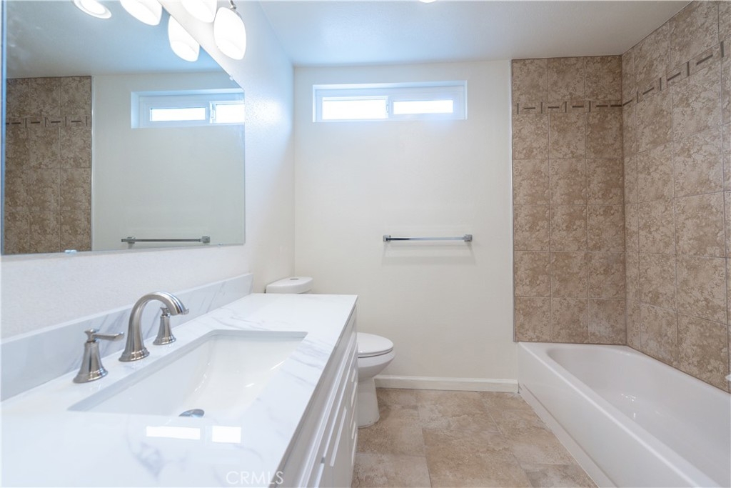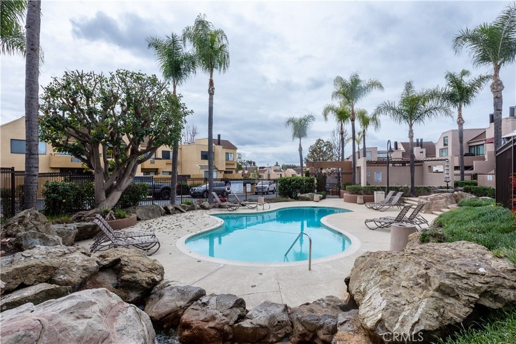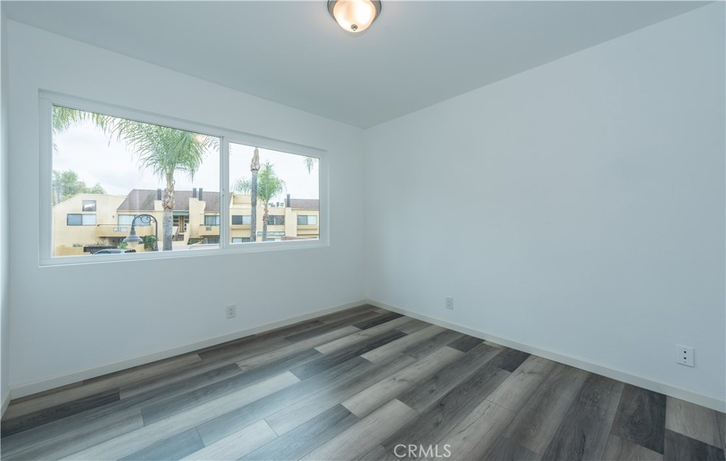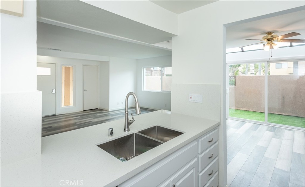 This stunning 2 story end-unit townhome is highly upgraded. Almost everything is Brand new. Brand new kitchen with quartz countertop and full backsplash, stainless steel appliances, upgraded bathrooms with marble countertops, new vanities, new light fixtures, new mirrors, and tile floor. Laminate wood floors throughout the living room, bedroom, stairway, and laundry area. Fresh white paint and white cabinets make the rooms feel sunny, bright, and open. The floor plan offers two large bedrooms and 2.5 baths. The main suite features a large walk-in closet and a shower and tub combination. The upstairs closet offers a stacking washer/dryer unit. new wiindows, sliding door. This home has two bedrooms and 2.5 bathrooms with a large turf-installed backyard. It is the BEST location in the community, just next to the community pool. The separate two-car garage is just a few steps away from the unit. The association offers pools, a BBQ area, a clubhouse, and spas. Close to the freeway, toll road, and Irvine Spectrum.