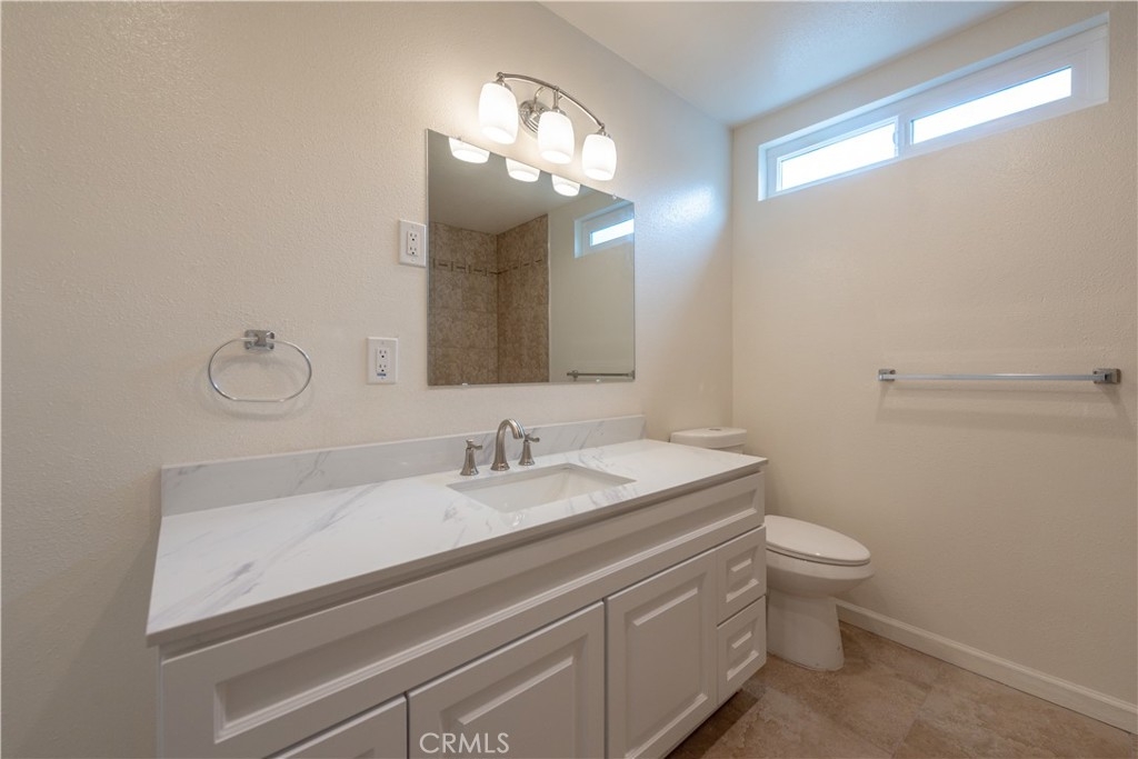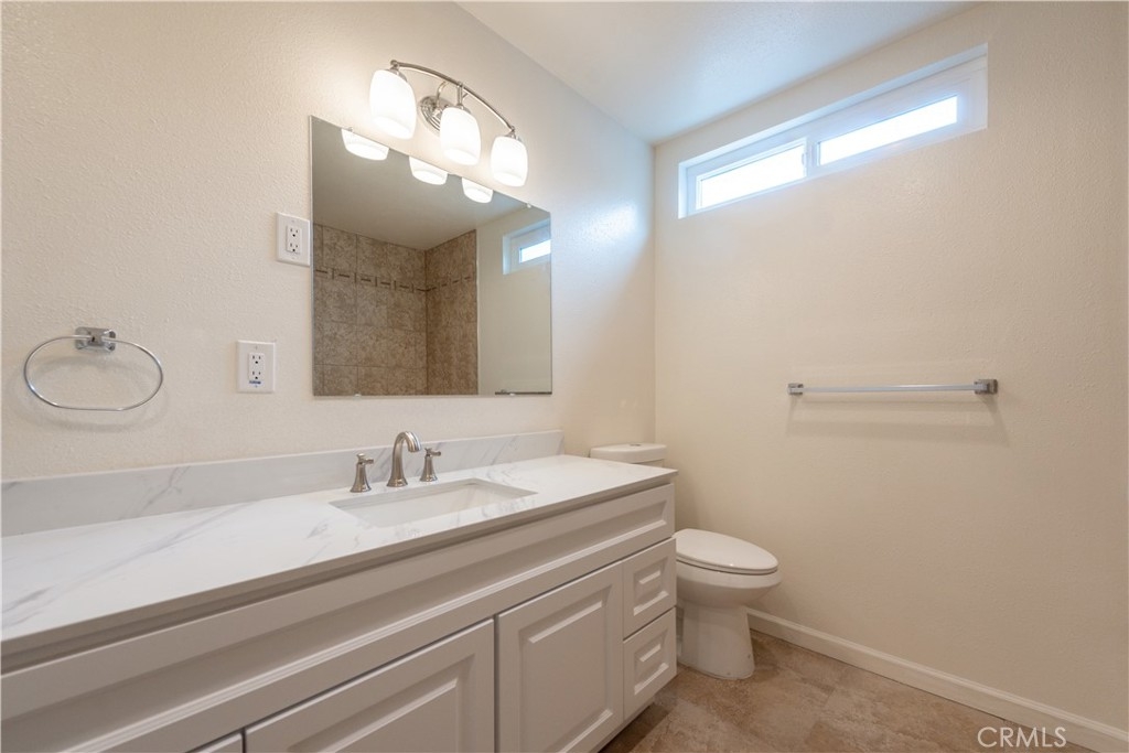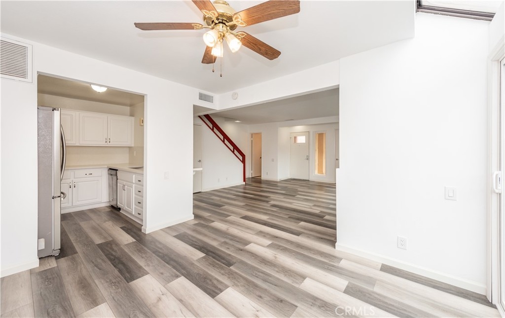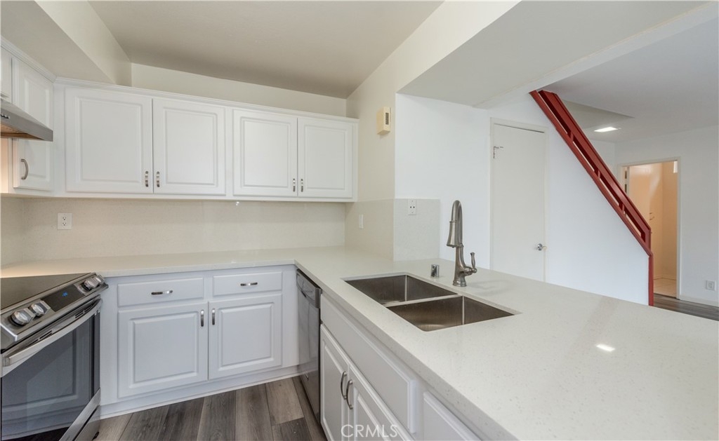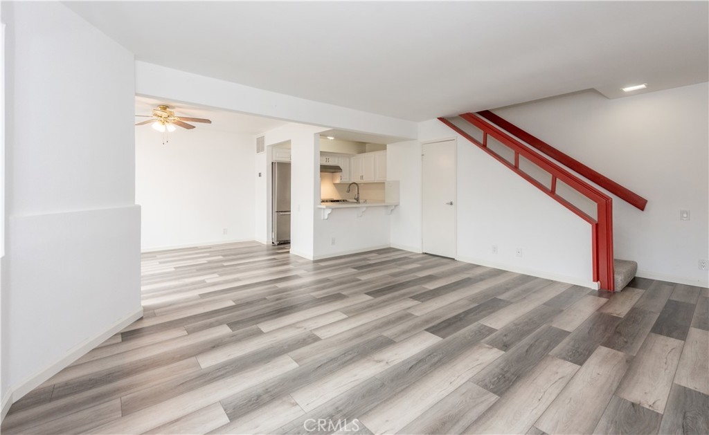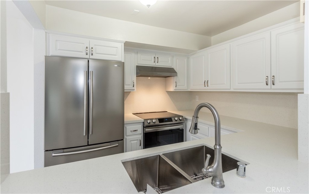 This stunning 2 story end-unit townhome is highly upgraded. Almost everything is Brand new. Brand new kitchen with quartz countertop and full backsplash, stainless steel appliances, upgraded bathrooms with marble countertops, new vanities, new light fixtures, new mirrors, and tile floor. Laminate wood floors throughout the living room, bedroom, stairway, and laundry area. Fresh white paint and white cabinets make the rooms feel sunny, bright, and open. The floor plan offers two large bedrooms and 2.5 baths. The main suite features a large walk-in closet and a shower and tub combination. The upstairs closet offers a stacking washer/dryer unit. new wiindows, sliding door. This home has two bedrooms and 2.5 bathrooms with a large turf-installed backyard. It is the BEST location in the community, just next to the community pool. The separate two-car garage is just a few steps away from the unit. The association offers pools, a BBQ area, a clubhouse, and spas. Close to the freeway, toll road, and Irvine Spectrum.