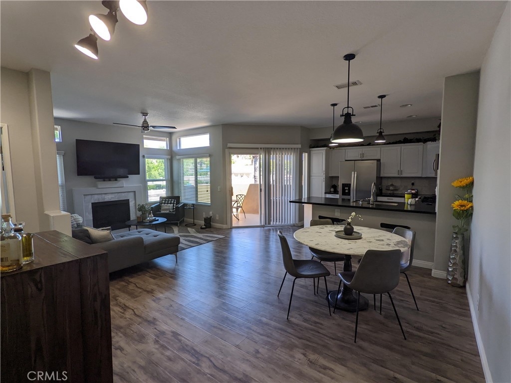 Welcome home to your open concept, move-in ready corner unit in the desirable Montecido at Portola Hills! This highly upgraded two bedroom and two bath unit comes with extensive modern updates, including: gorgeous laminate flooring throughout, recessed lighting, modern light fixtures, and neutral paint to set the stage for your dream home. Enter your home from the attached oversized one-car garage and up the stairs to see your open concept living space that includes an inviting marble accent gas fireplace, private balcony, and infinite configuration options. Treat the chef in your life to a beautifully remodeled kitchen with matching stainless steel appliances (all included!), premium matte granite countertops, and plenty of room for bar seating. The main bedroom features an updated en suite bath with a new vanity, as well as a walk-in closet that comes with an additional organizer for ample storage. The spacious secondary bedroom could also double as a home office. Both bedrooms include large windows that provide an abundance of natural light and tree-lined views of this beautiful, quiet neighborhood. This turnkey home is equipped with so many features your head will spin: the recently replaced one year old HVAC condenser and furnace will keep you comfortable, along with an Ecobee smart thermostat to help save on energy costs, new double-pane windows to keep your home cool and quiet, convenient laundry in your attached garage (both units included!), a newer water heater, bright white main bathtub and master shower that were reglazed only a few months ago, and so much more! Take advantage of one of the lowest HOA fees ($250/mo) in South Orange County with NO Mello Roos, saving potentially hundreds a month on your total monthly payments. Enjoy convenient access to Foothill Ranch Towne Center with tons of shopping options, plenty of nearby restaurants, walking distance to highly rated Portola Hills Elementary, easy access to the nearby 241 toll road to get you to anywhere in no time. Come take a look at this rare opportunity before it sells!