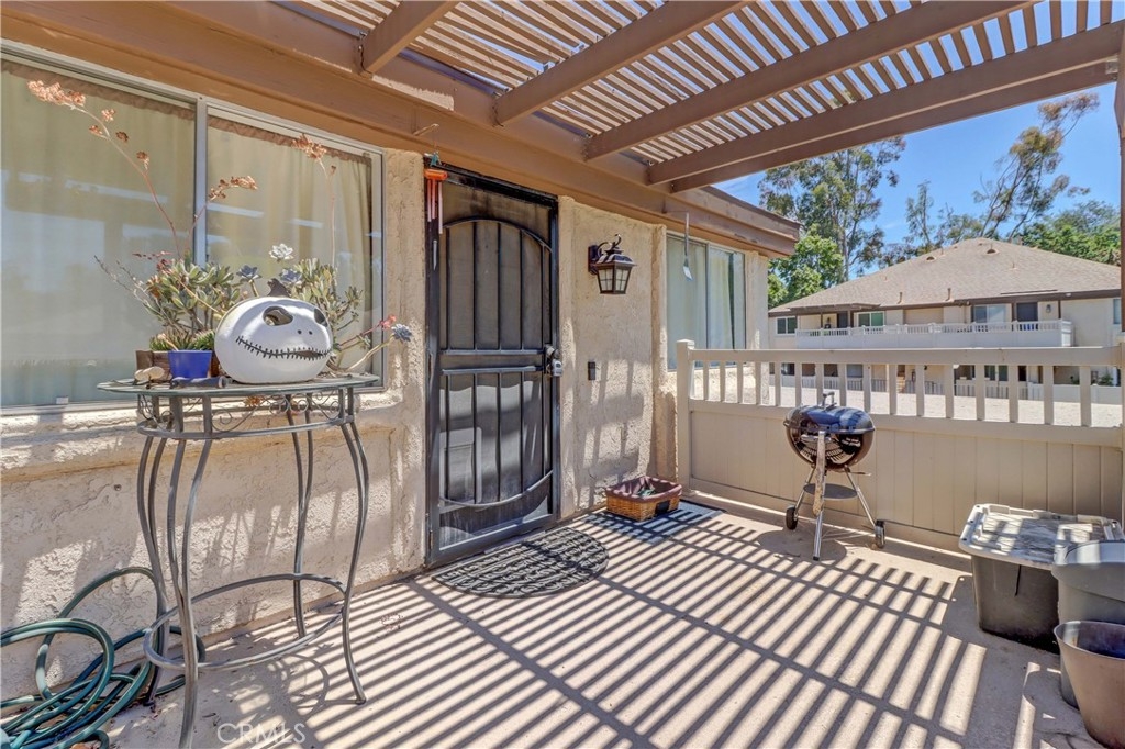 Don't miss your opportunity to own this fabulous 1 bedroom - 1 full bathroom condo. Tucked away in the small, peaceful community of Trabuco Highlands. This home features a recently purchased AC unit and furnace, a inside area for a washer and dryer, granite counters, lighting, large 18 x 18 ceramic tile floors, over-sized single basin stainless steel sink and matching stainless faucet. Other upgrades include durable laminated wood floors throughout, ceramic tile bathroom floors, bathroom sink faucets and newly added pex plumbing. This condo is an upper end unit with a front entry patio. Located very close to Rimgate park and shopping.