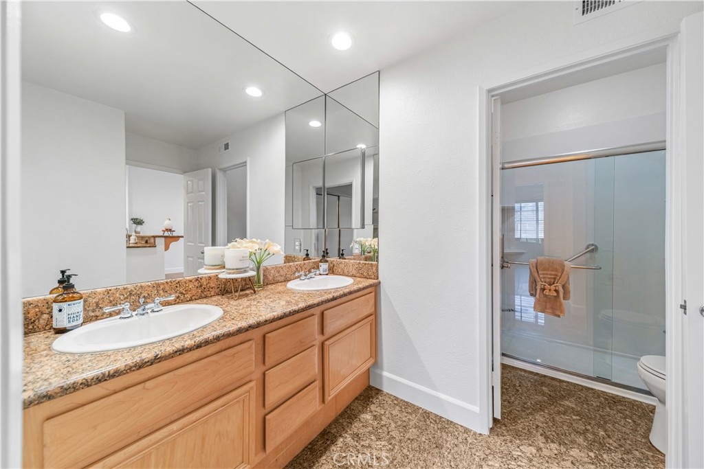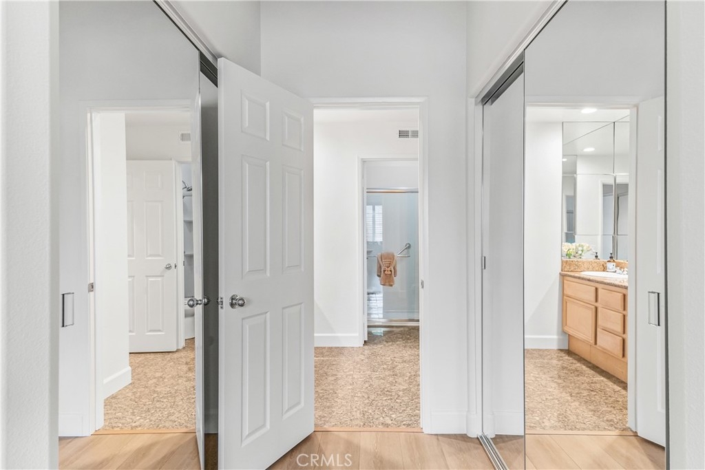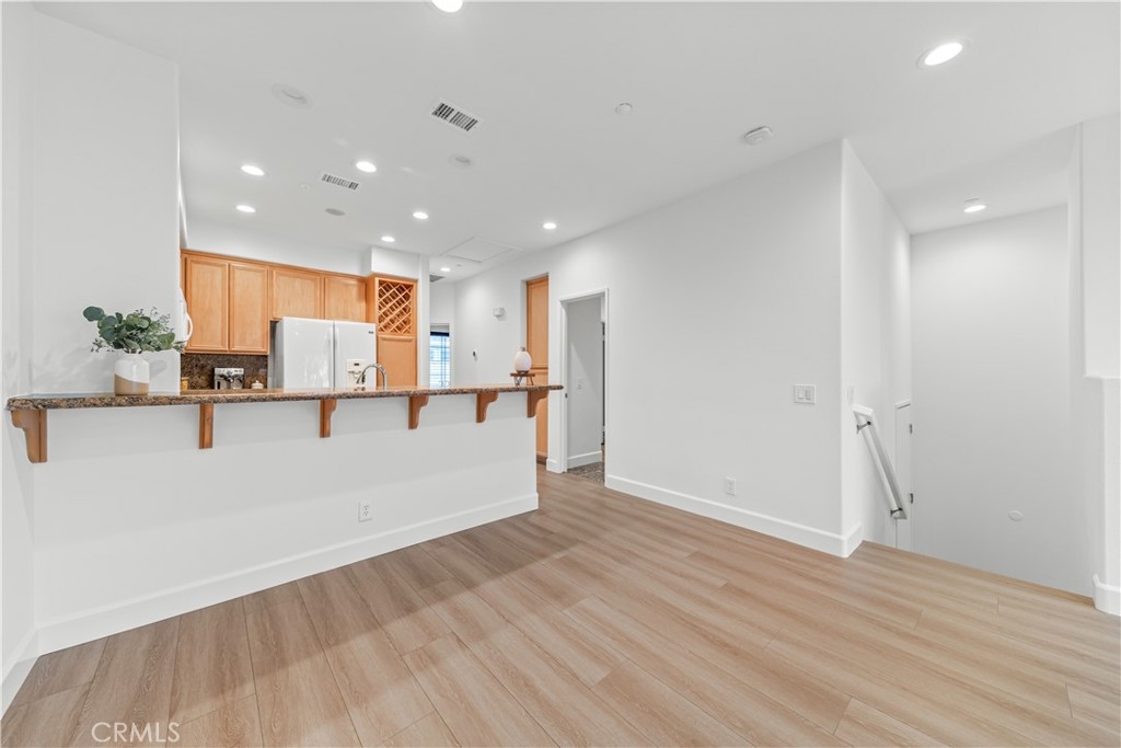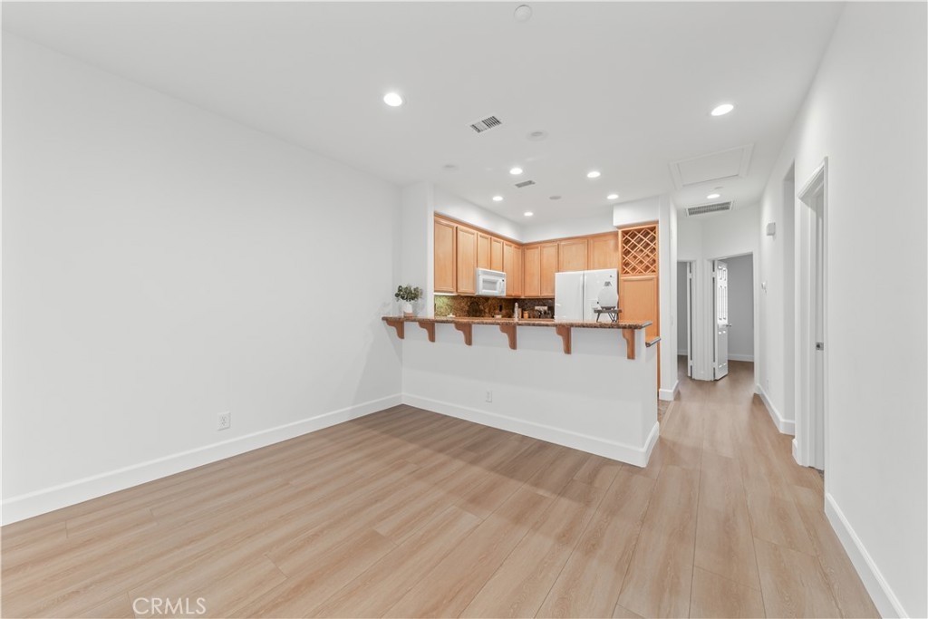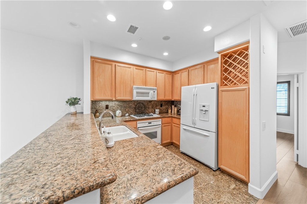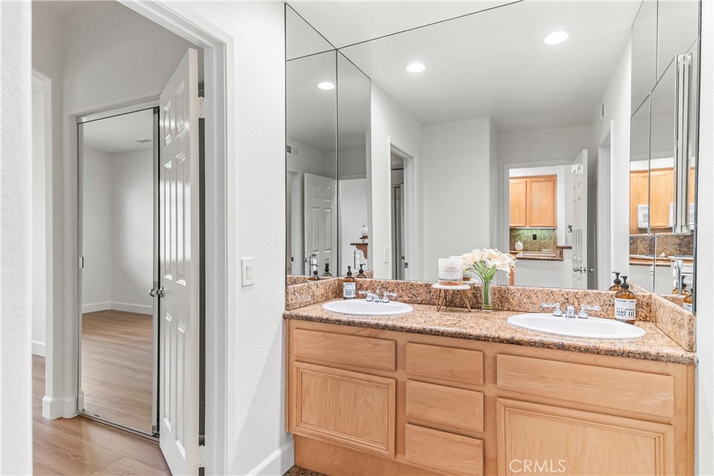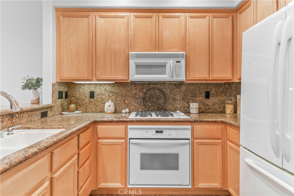 A BEAUTIFUL BEGINNING is waiting for you at this stylish, super-attractive condo, whose balcony boasts a forever view, out to the distant hills…. You’ll immediately notice the handsome finishes that enhance this striking unit—brand new luxury vinyl and granite flooring, along w/gleaming granite countertops and a freshly administered interior paint job. You’ll love its superb floor plan whose living area is a large, open space, absolutely ideal for cooking, relaxing, or entertaining! The open design features a LR, adjacent Dining Area, and beyond that, the Kitchen. The LR is highlighted by a granite FP, flanked by an alcove w/glass-faced cabinets to house your media equipment. Sliding doors in this room open to the balcony w/its eye-catching view. The Kitchen is spacious but also practical, w/under-cabinet task lighting, plenty of storage, and a breakfast bar for casual meals. The MB provides dual wardrobes—one has built-in organizers—and offers the terrific convenience of direct access to the remodeled Bath, where you’ll appreciate dual sinks in a vanity area that is separate from the rest of the Bath and a large walk-in shower with glass enclosure. BR 2 has a built-in cabinetry in the closet that makes it easily transformed into an office, if so desired. Both BRs feature plantation shutters. In addition to a storage closet on the balcony, the attached, direct-access Garage has overhead storage, a charging station and an epoxy floor; there is also an additional parking space (closest space to the building). Washer, Dryer and Refrigerator are all included. Entire HVAC system and ducting were installed in 2022. This delightful community has a pool/spa and playground apparatus! Close to elementary school/park/trails, too! Please be sure to take a look at the 3D Matterport tour found under the 360 degree icon located under the area map.