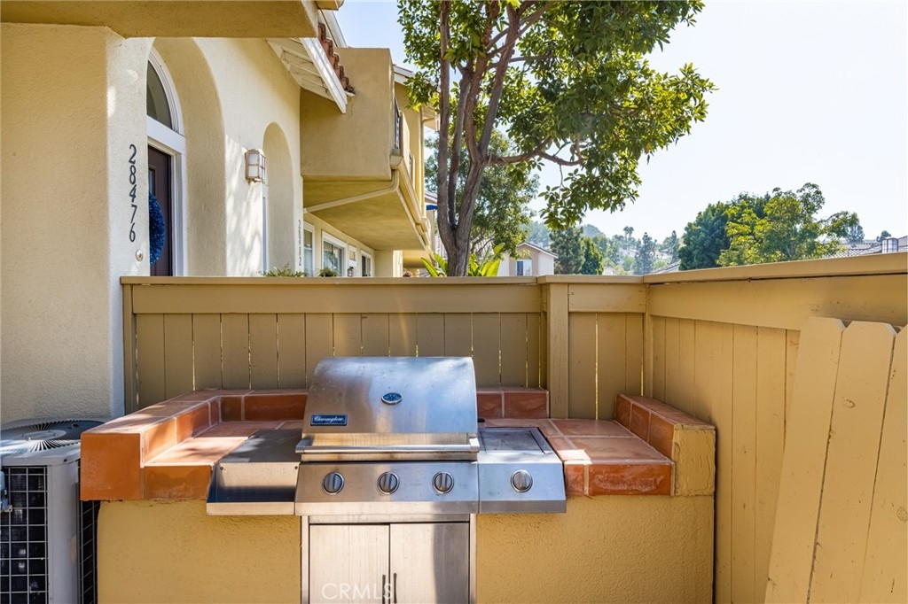 Exceptional community and a beautiful location! This lovely ONE-LEVEL, ground-entrance corner unit would be your prized possession. With DIRECT access to a TWO-CAR GARAGE, it boasts an open floor plan that showcases the brightness of the living and dining rooms. The open concept makes it easy to entertain, seamlessly transitioning from indoor to outdoor living spaces. The large outdoor patio features a built-in grill, canyon views (with a peek of Catalina Island on a clear day), and a newer, earth-tone travertine tile floor. The washer and dryer in the garage are included. The newer microwave, washer, pressure regulator, and water heater are all less than two years old. There is plenty of storage space throughout. The kitchen features quartz countertops, a newer sink and faucet, and stainless steel appliances. Neutral paint colors throughout, along with newer glass shower doors. Newer double-pane windows and sliding doors enhance energy efficiency. Walking distance to the highly regarded Portola Hills Elementary School and very close to Foothill Ranch Town Center, malls, shops, and restaurants. Convenient commute to all South County cities. The community includes a park and pool. This tranquil, hilltop Bella Palermo community is ideally located near the outstanding hiking and biking trails of Whiting Ranch and Red Rock Canyon.