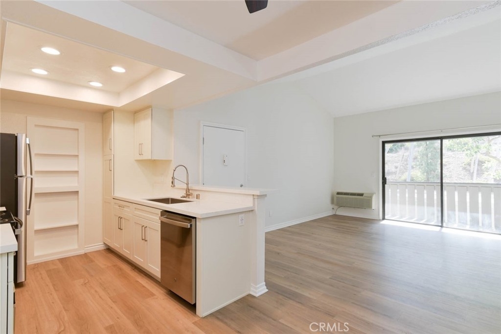 This one has it all! Absolutely beautiful and highly upgraded! Almost everything is new in this condo! This meticulously upgraded home offers a great end unit location, 2 master bedrooms, 2 baths, view, a large balcony, 1 car garage, and 1 assigned parking space. The unit located in the Pheasant Creek complex with its streams, ponds & mature trees. This well-maintained home features a large living room with vaulted ceiling and sliding glass door to a relaxing balcony. The fully updated kitchen features new cabinets, quartz countertops, recess lighting, a large sink, faucet, stainless steel appliances and breakfast counter. The kitchen opens to the large living/dining area. New laminate flooring and fresh paint throughout. Large bedrooms with plenty closet spaces. Upgraded ceiling fans in dining area and bedrooms. Fully remodeled bathrooms with new vanities, mirrors, light fixtures, faucets and resurfaced bathtubs. Laundry closet in patio with extra storage space. Great interior location close to pond, pool and water streams that run through the community. Homeowner association pays for water, trash and outside maintenance. Resort-like community amenities; lush paths, streams, ponds, pools, Tennis & basketball courts. Close to schools, shopping, parks, Saddleback Church, Irvine Spectrum, Walking/biking trails and Sports Park! upgraded Washer, dryer and new refrigerator are included. This won't last!