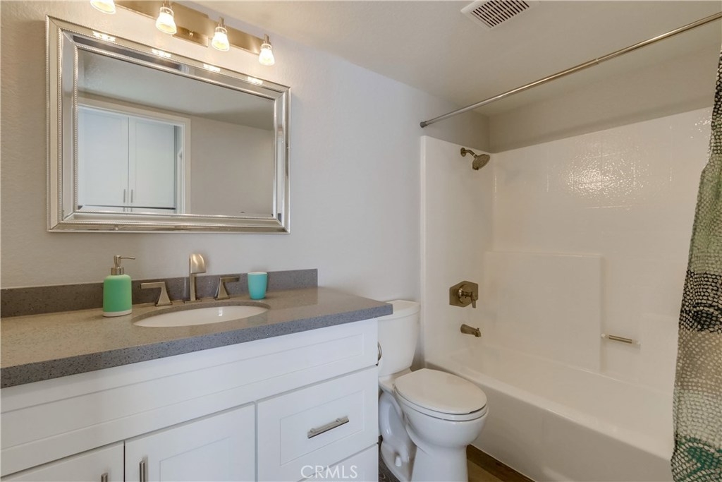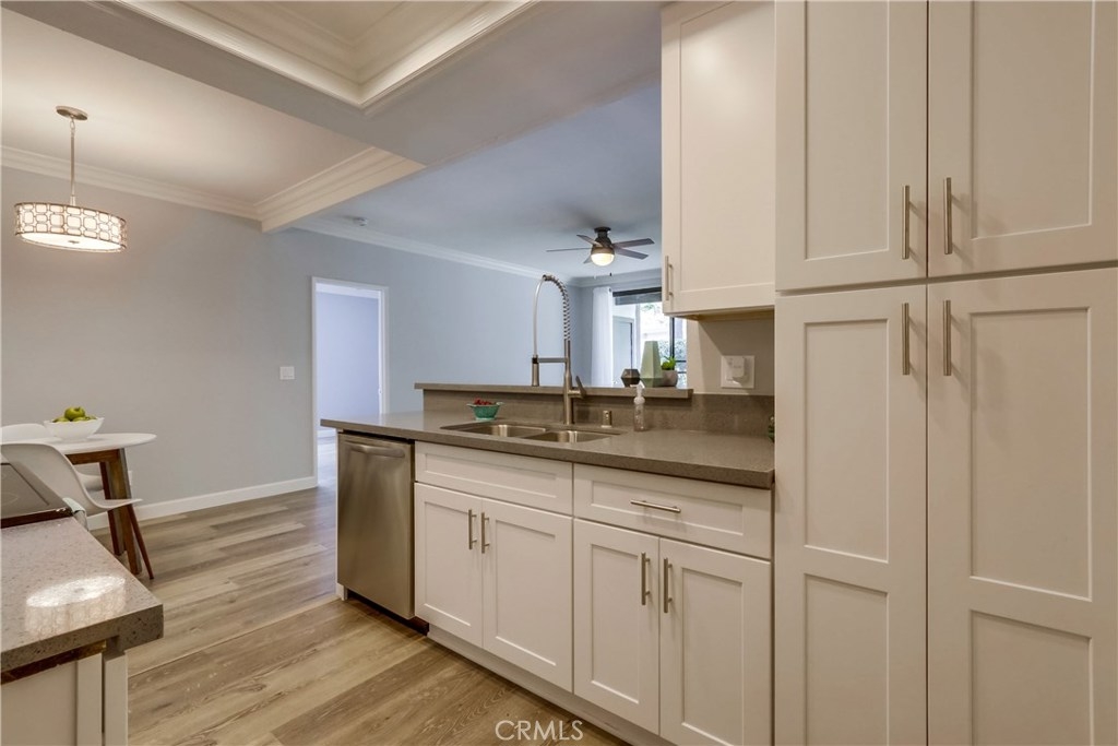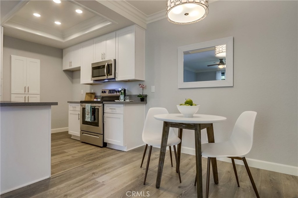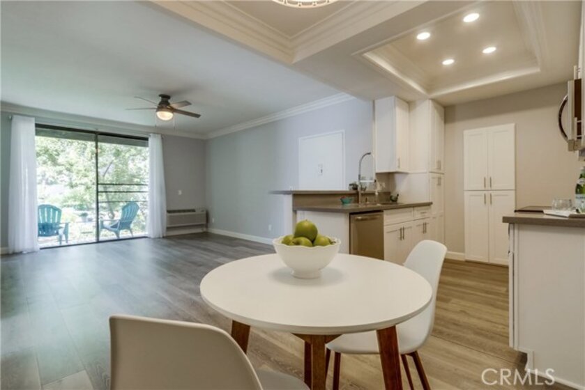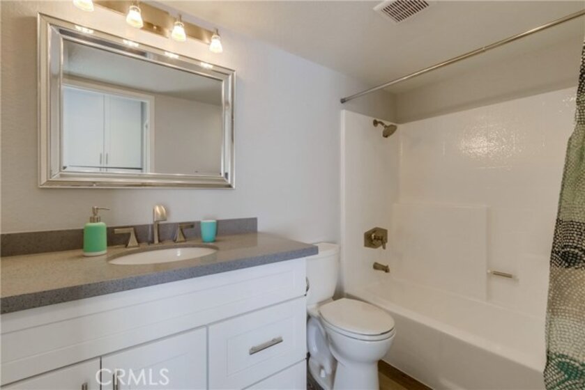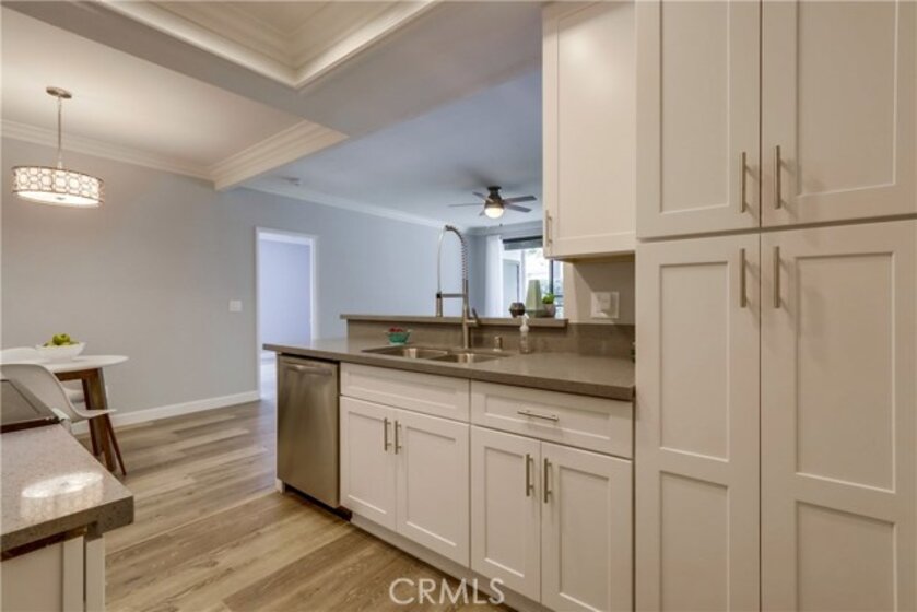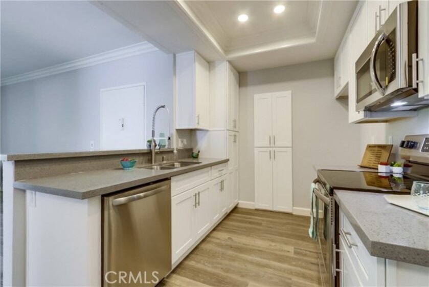 CHECK OUT THIS COMPLETE REMODEL! Soak up the sun and enjoy the babbling brook from your own patio, then step inside to your new ice cold air and remodeled contemporary home. This charming one bedroom one bath has everything you are looking for with a price that makes you say are you sure this is in Orange County! Remodeled open kitchen with quartz counter tops, stainless sink and industrial faucet. New cabinets with soft close doors and drawers. Designer colors as well as new contemporary lighting and fans. New laminate flooring throughout with the kitchen and bathroom both in water resistant to match! This is an END UNIT and has its own 1 CAR DETACHED GARAGE with additional permit for open parking, not to mention your own laundry! Stroll the pathways to the pools, spa, tennis and sports court all situated among charming ponds and tranquil streams. We are located in Building 26.