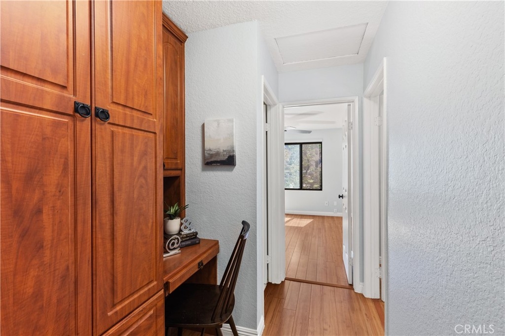 The Pheasant Creek community is Orange County living at its finest. Welcome to this beautiful condo, featuring two primary bedrooms with a view located in the heart of Lake Forest. This upper level condo has a SINGLE CAR GARAGE and an assigned parking space, rare to this floor plan! The moment you enter you will see the vaulted ceilings give the living room an open and spacious feeling. The kitchen opens to the dining room and has plenty of space to cook and entertain guests. Just out the large sliding doors to the covered balcony you will find the laundry room that can accommodate a full size washer and dryer. But don't rush past the gorgeous view below of the creeks, trees and koi pond. Down the hall you will find a built desk, a great space for you to work from home. The first primary bedroom has beautiful built-in shelving, blinds, a ceiling fan and its own private bathroom. The second primary bedroom has a ceiling fan, blinds and a private bathroom as well. The HOA maintains the well groomed landscape, creeks, ponds, pools, tennis courts, basketball court and even includes water & trash. You are going to feel right at home at Pheasant Creek while still being close to the toll roads, parks, shopping, dining and great schools. FHA approved and no Mello-Roos!