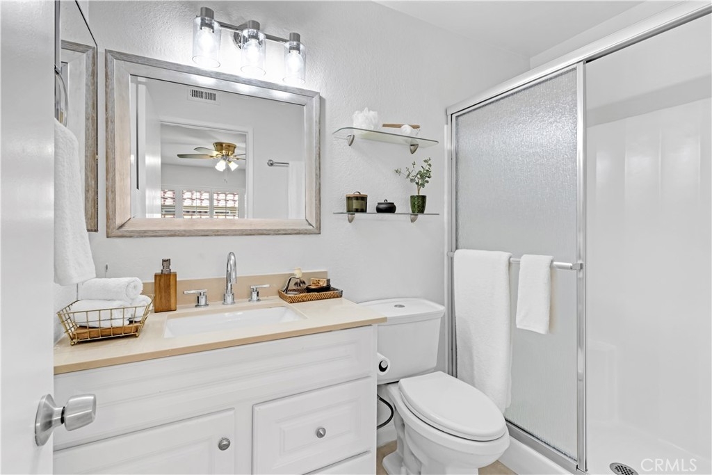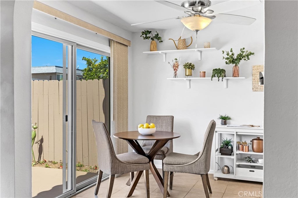 Fresh Paint, New Carpet, Two Sparkling Bathrooms with new fixtures, One Car Garage and One assigned parking spot. All in move-in condition! Ground level home with no one above and attached on one side only, with only one tiny step! Located within the nicely maintained Rancho Viejo community in Lake Forest, less than a mile to golf, hiking and biking trails, shopping, restaurants, entertainment and only minutes from the 5 freeway. You will enjoy lots of natural light in this spacious single level condo with over 1000 square feet of living space. A large living room greets you as you enter with large dual pane windows and wooden shudders. The kitchen is updated with tile countertops and glass inset cabinetry that provides lots of storage, dining room, and an inside laundry closet with washer/dryer included. Refrigerator is also included. Entertaining outside is easy on your own private enclosed backyard patio just off the kitchen. This end unit is within close proximity to the large community pool and spa with seating and lounge chairs. There are also large grass areas throughout the community to enjoy. Also, water trash and fire insurance are included in the HOA.