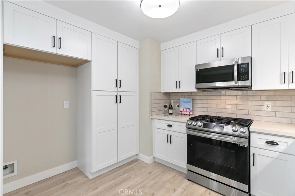 Fantastic opportunity to own an almost single family like condo with no neighbors on 3 sides! This unique home is a great property for someone who is looking for a single level home with a large patio. The home is completely up[graded. The brand new improvements include: Flooring, interior paint, baseboards, all new kitchen including new White cabinets, Quartz counters, Glass tile backsplash, stainless steel appliances, lighting fixtures, all new bathrooms including vanity, counters, sinks, mirrors, all new vinyl windows and patio door, most hardware, lighting and plumbing fixtures. This home has a great floor plan with 3 bedrooms along a central hallway, master with a good size closet, inside side by side laundry, large patio next to the dining room.The home has one car garage and one assigned parking spot. The association pool and park are just around the corner and there is plenty of parking for the guests. The home is located near shopping and entertainment, schools and transportation. Seller will pay $200 per month for 3 years towards HOA fees