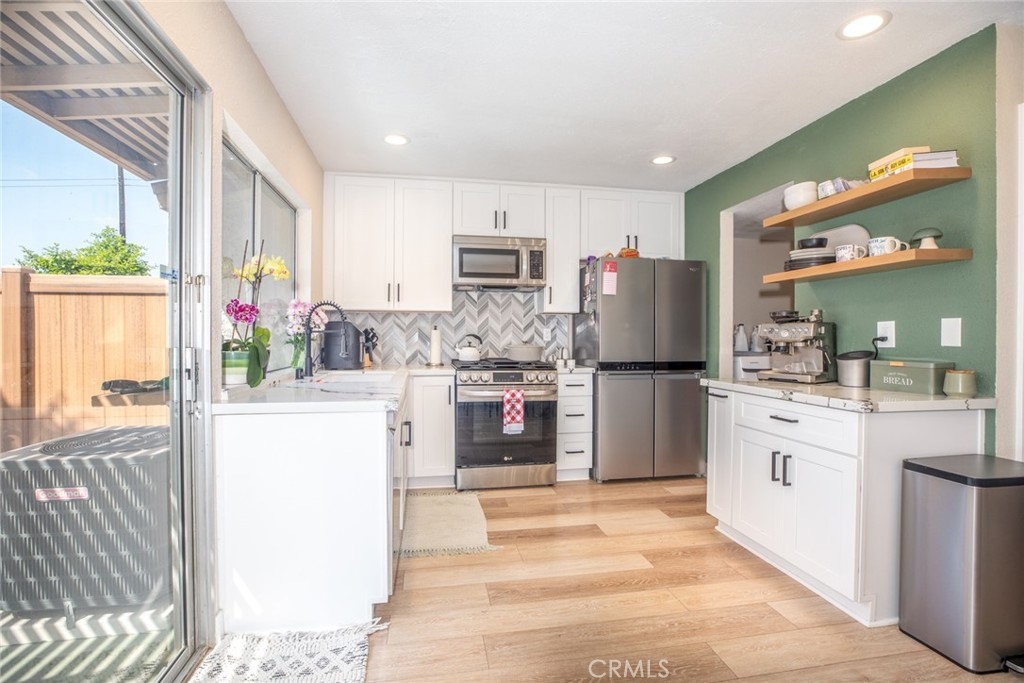 Beautifully Remodeled two story home, no one above or below. Nice size yard, one car garage with direct access. This home has been completely Remodeled. New kitchen cabinets, quartz counters, floating shelves, new bathrooms, beautiful vinyl flooring throughout. Remodel done just two years ago. This designers dream has two huge bedrooms and is steps to the pool but far enough to avoid noise. Don't miss this one.