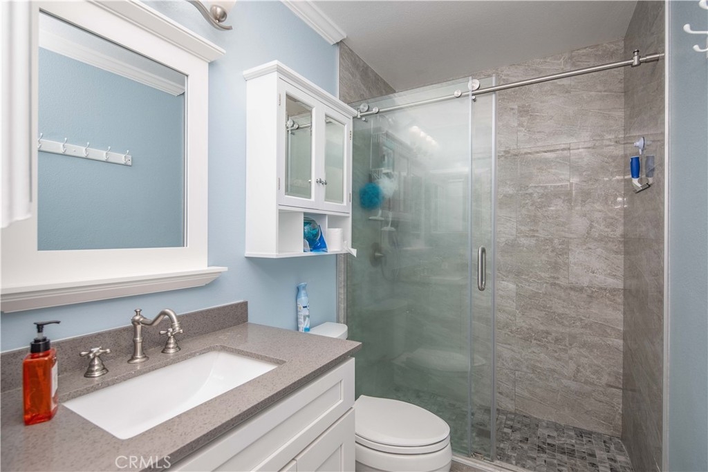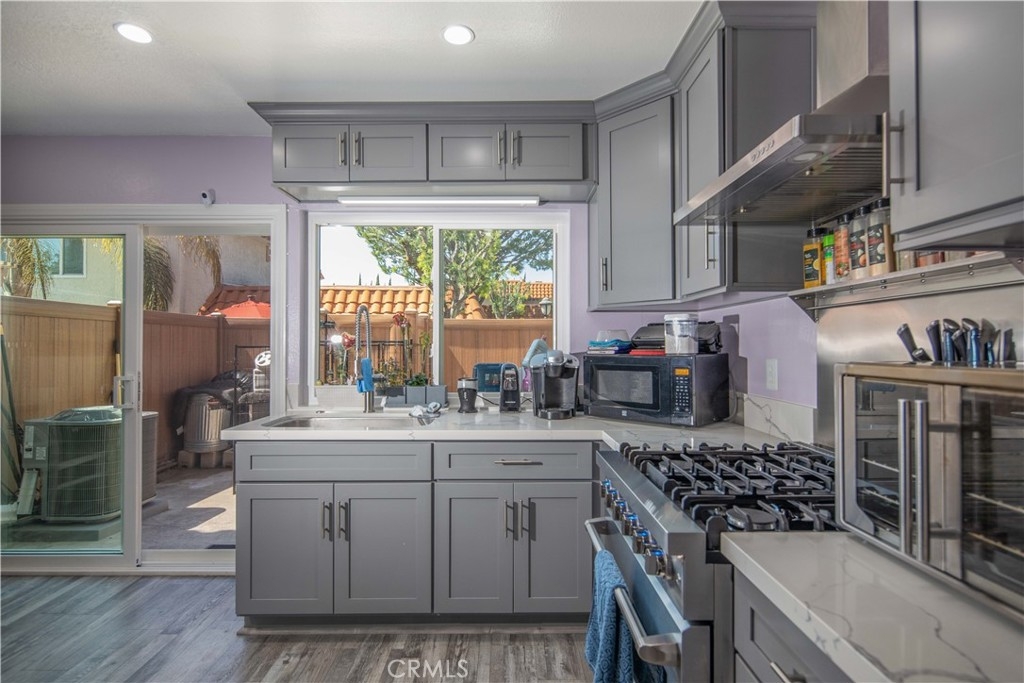 This is the one you’ve been waiting for. This three bedroom home has so many upgrades! Downstairs you will find a spacious living room leading to a fully remodeled kitchen with all stainless appliances, washer, dryer and refrigerator included, quartz counters and all new cabinets. Truly a chef’s dream kitchen. The dining area leads to a large patio that is great for family barbeques and entertaining. Upstairs are three spacious bedrooms and a fully remodeled bathroom. Some of the many upgrades in this beauty are, new ac and heater, all new dual pane low V windows, led recessed lights throughout, ethernet, laundry room with utility sink and much more. All of this centrally located to shops, freeway and award winning schools.