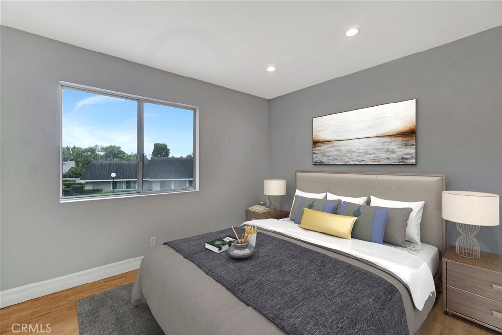 Nestled in the heart of beautiful Lake Forest, this charming and rare two story 4 bedroom, 2.5 bath, two-car garage residence will captivate you with its extraordinary features. As you step through the private gated entrance to the main door, you are welcomed into an open concept living room that seamlessly transitions into the dining room and kitchen. The kitchen offers elegant white cabinets, appealing granite counter tops, and modern stainless steel double sink and faucet. The first floor is covered by classic ceramic tiles that are waterproof and durable. Double pane windows and recessed lighting throughout the living room and dining room brighten up the space with both natural lighting and comfort. The lush private patio area is perfect for entertaining family and friends. The two-car attached garage protrudes out from the main house so that the garage does not disturb the residents. As you head upstairs, wood flooring encompasses the staircase and all spacious bedrooms. Situated in the perfect location, this home offers easy access to the community pool, clubhouse, and tennis court. Also very accessible to schools, shopping, parks, and hiking trails.