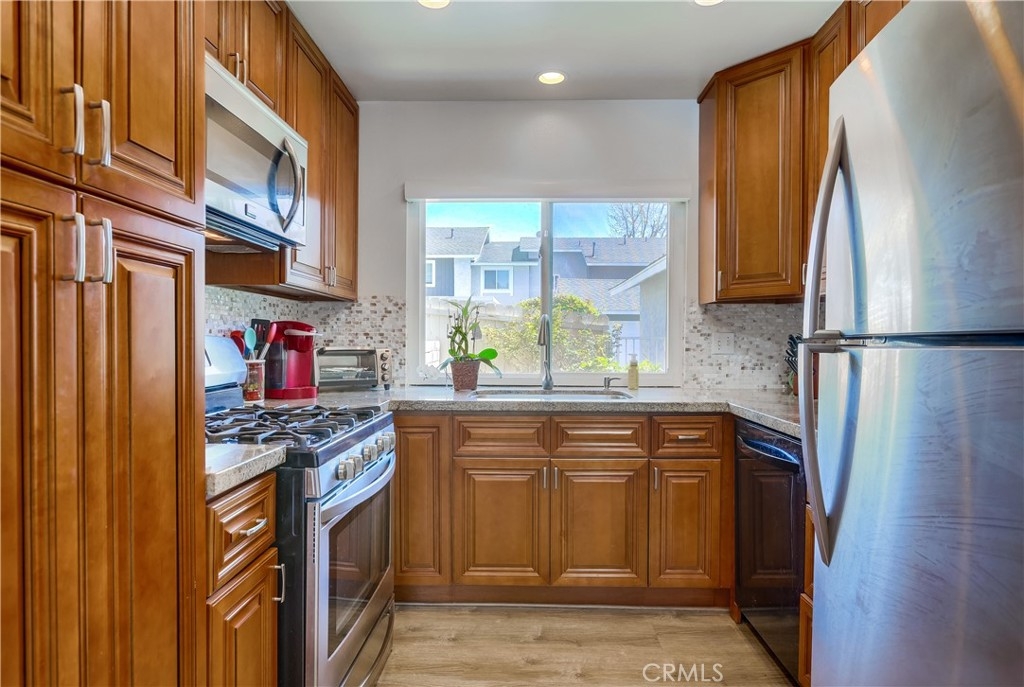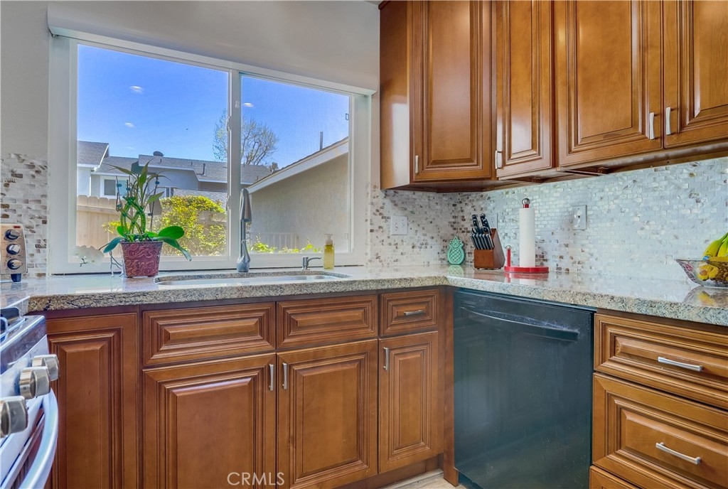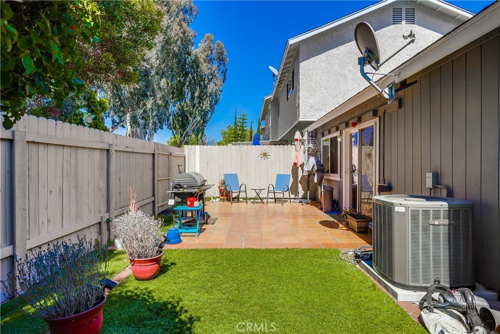 A rare Richwood Townhouse! Lovely upgraded home, with a large fenced yard, and a big two-car garage. Come home to this two-bedroom townhouse-style condo, in the heart of Lake Forest. Nobody on three sides, with a wide natural belt behind the back fence. Open living room / dining combo, and upgraded kitchen. Homes in this complex rarely come up for sale, and for good reasons: Gorgeous greenbelted community, amazing pool (see pics), tennis court, and an great central location in Lake Forest. The air around this unit is open on three sides, with ample guest parking to one side, and the natural eucalyptus trees behind the home, with gate access. Feels much like a single-family home. Nice layout, with living room and dining room overlooking the back yard. Two bedrooms, one full bath, and one half bath. The kitchen features udated cabinets and granite counters, overlooking the front patio. (Yes, there's an additional front patio.) Central Air & Heat, updated windows throughout. The complex has an open feel, and plenty of room, pleasant walking paths, and just a few steps to the pool and tennis court. A short way down the street you'll find the Aliso Creek Bikeway and English Creek nature area, a great place for a hike or bike ride. This quiet neighborhood is just a few blocks from retail shopping and dining options, and a short drive to some beautiful nature in Santiago Canyon and the nearby mountains.