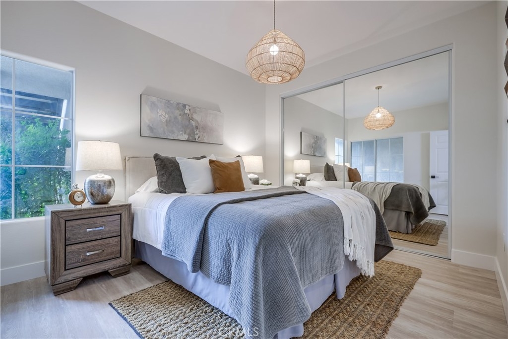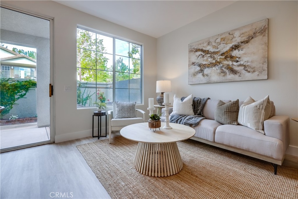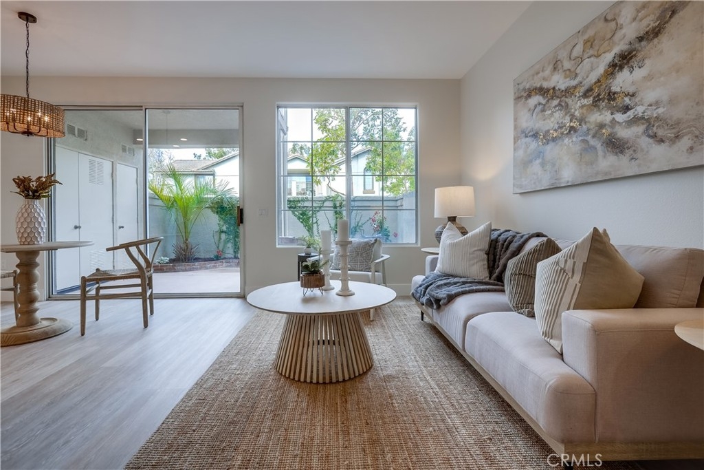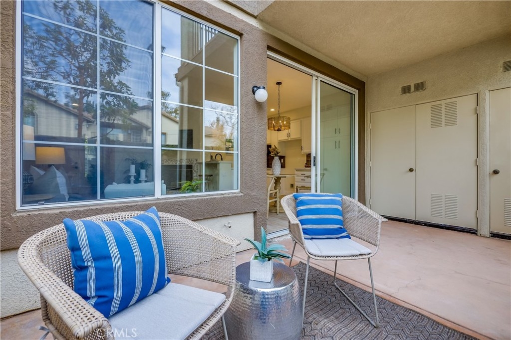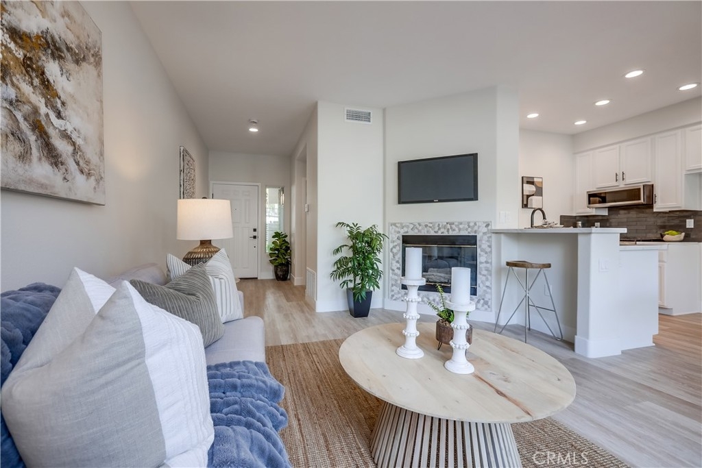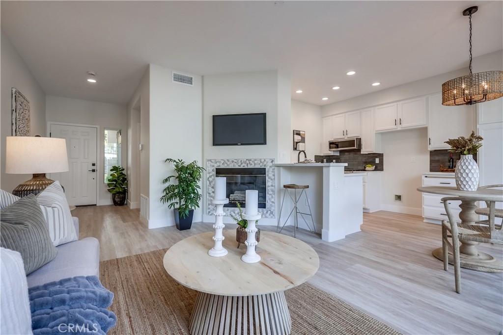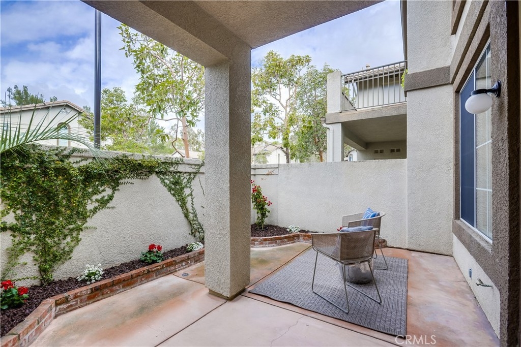 Gorgeous and Newly Remodeled Throughout with a high attention to detail and Stylish New Features and Upgrades, ideally located in the highly desirable Salerno Community in Foothill Ranch! Step inside this lower-level home and soak in the light filled interior and beautiful updates including new Central Air Conditioning, sleek new luxury vinyl plank floors, newly upgraded baseboards and casings, high ceilings, custom neutral paint palette, new light fixtures, and an open floor plan providing a superb living environment. The living room boasts a cozy fireplace with custom surround and is open to the dining area and kitchen, with direct access to the back patio creating an ideal indoor-outdoor living space. The light and bright kitchen boasts an abundance of storage cabinetry and has been beautifully remodeled with sparkling Quartz countertops, striking new tile backsplash, new cabinet hardware, new sink and faucet, new disposal, new stainless-steel appliances, and recessed lighting. The spacious bedroom is a peaceful retreat with new custom light fixture, mirrored closet doors, and new custom closet organizers. The bathroom has been thoughtfully redesigned and reimagined with new tile floors, new Quartz topped vanity, new cabinetry hardware, gorgeous new faucets and fixtures, new custom-tiled bath surround, new large, framed vanity mirror, new custom lighting, and all new plumbing and fixtures. Additional new upgrades include all new door hardware. The large back patio is a private oasis perfect for relaxing and entertaining loved ones with new landscaping and a convenient laundry closet with full size appliance hookups. This home also boasts a detached one car garage! This well-maintained community includes a community pool and spa, lounging and gathering spaces, and picnic areas. Just a short stroll to Foothill Ranch Community Park with tennis courts, sports courts, roller hockey rinks, sand volleyball courts, playground/tot lot, playing and sports fields, and picnic and BBQ areas. Within walking distance of numerous shopping and dining venues, fitness centers, Library, Foothill Ranch Elementary School, Borrego Park, access to Whiting Ranch Wilderness trails, and numerous hiking and biking trails! Easy Toll Road access and close to Irvine Spectrum Center.