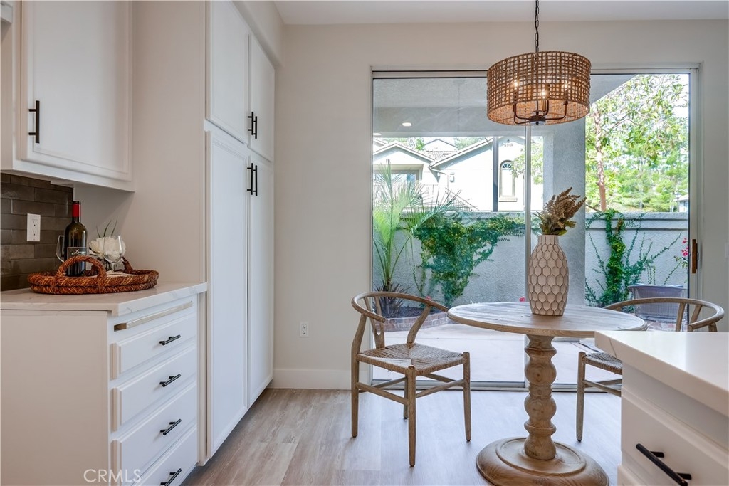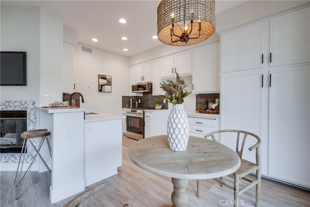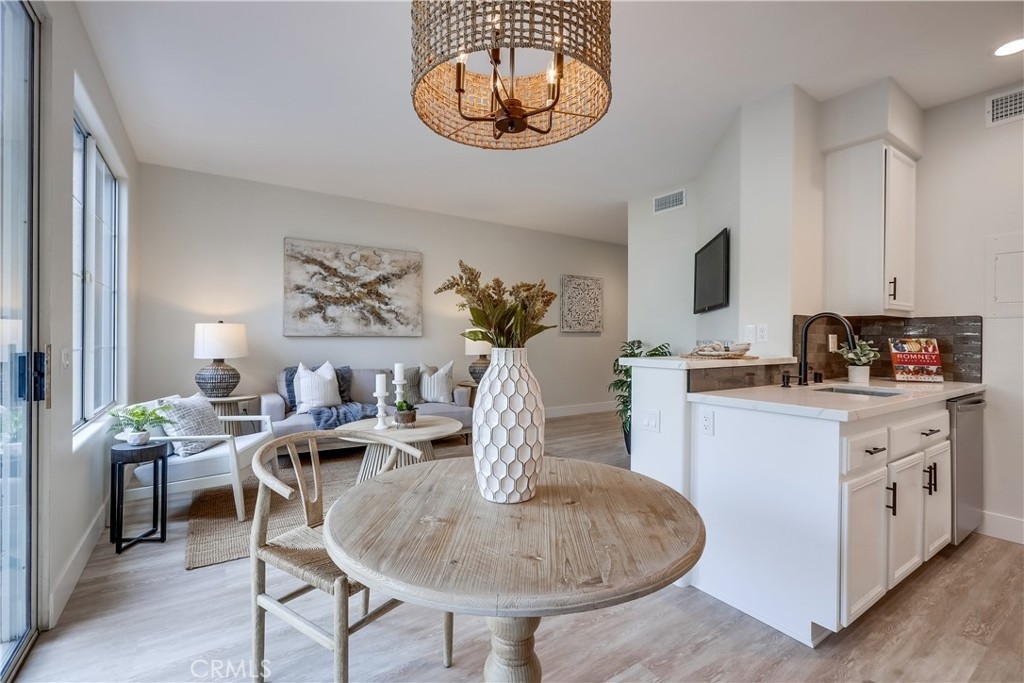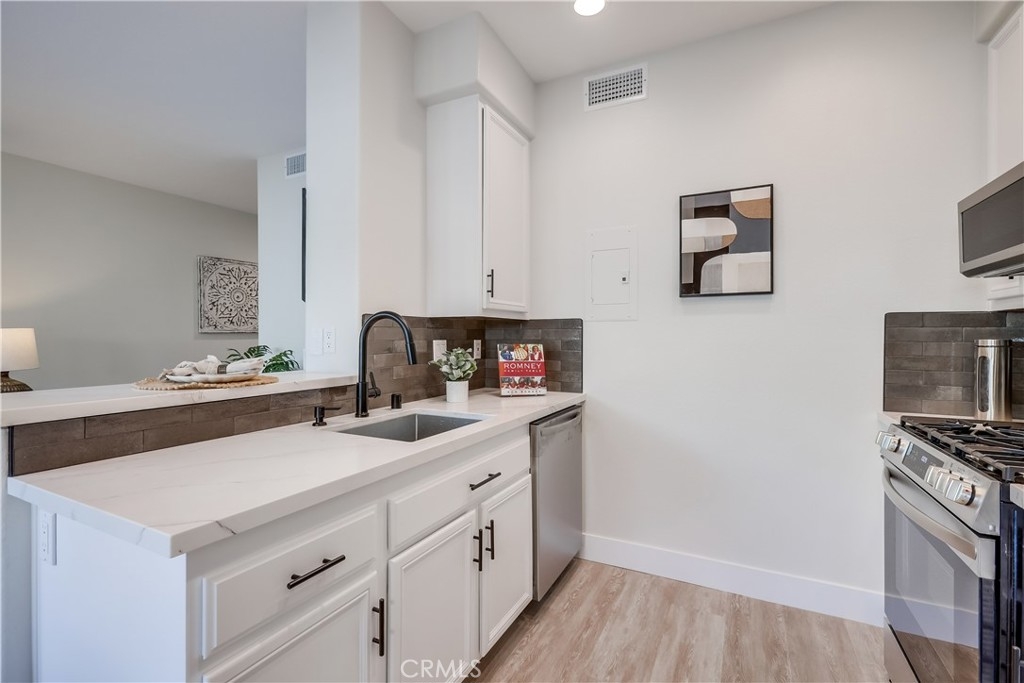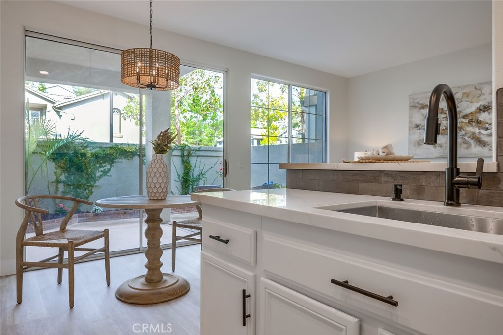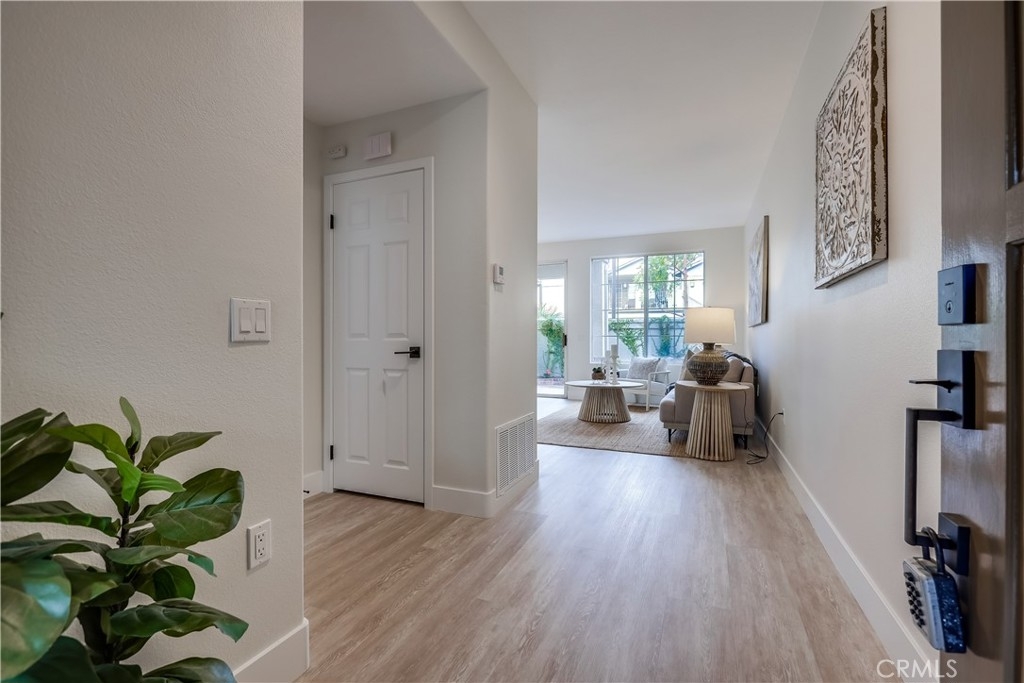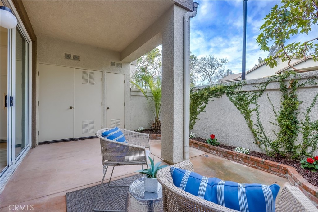 Gorgeous and Newly Remodeled Throughout with a high attention to detail and Stylish New Features and Upgrades, ideally located in the highly desirable Salerno Community in Foothill Ranch! Step inside this lower-level home and soak in the light filled interior and beautiful updates including new Central Air Conditioning, sleek new luxury vinyl plank floors, newly upgraded baseboards and casings, high ceilings, custom neutral paint palette, new light fixtures, and an open floor plan providing a superb living environment. The living room boasts a cozy fireplace with custom surround and is open to the dining area and kitchen, with direct access to the back patio creating an ideal indoor-outdoor living space. The light and bright kitchen boasts an abundance of storage cabinetry and has been beautifully remodeled with sparkling Quartz countertops, striking new tile backsplash, new cabinet hardware, new sink and faucet, new disposal, new stainless-steel appliances, and recessed lighting. The spacious bedroom is a peaceful retreat with new custom light fixture, mirrored closet doors, and new custom closet organizers. The bathroom has been thoughtfully redesigned and reimagined with new tile floors, new Quartz topped vanity, new cabinetry hardware, gorgeous new faucets and fixtures, new custom-tiled bath surround, new large, framed vanity mirror, new custom lighting, and all new plumbing and fixtures. Additional new upgrades include all new door hardware. The large back patio is a private oasis perfect for relaxing and entertaining loved ones with new landscaping and a convenient laundry closet with full size appliance hookups. This home also boasts a detached one car garage! This well-maintained community includes a community pool and spa, lounging and gathering spaces, and picnic areas. Just a short stroll to Foothill Ranch Community Park with tennis courts, sports courts, roller hockey rinks, sand volleyball courts, playground/tot lot, playing and sports fields, and picnic and BBQ areas. Within walking distance of numerous shopping and dining venues, fitness centers, Library, Foothill Ranch Elementary School, Borrego Park, access to Whiting Ranch Wilderness trails, and numerous hiking and biking trails! Easy Toll Road access and close to Irvine Spectrum Center.