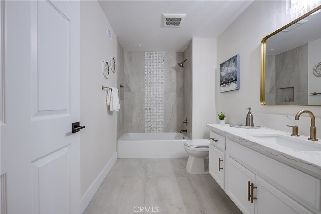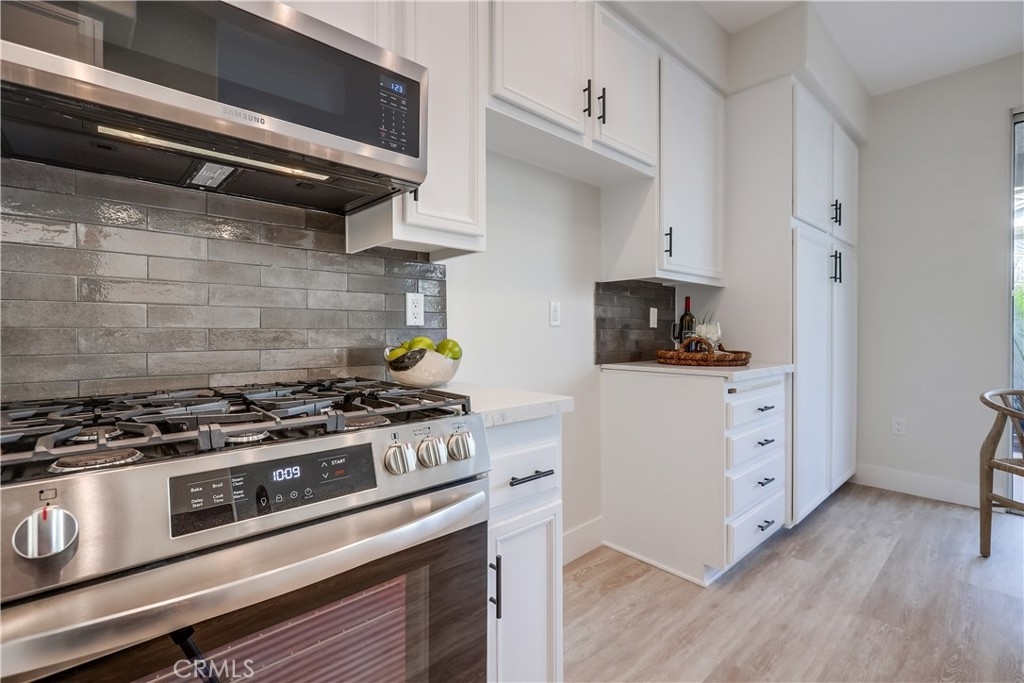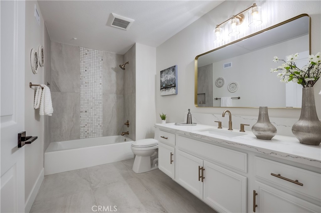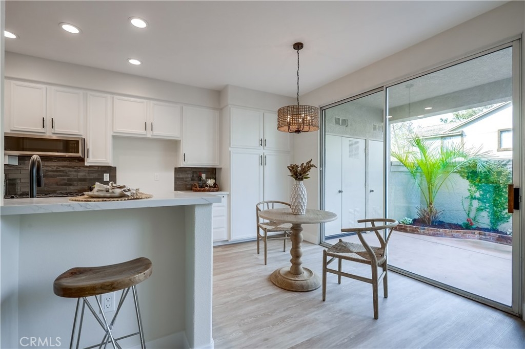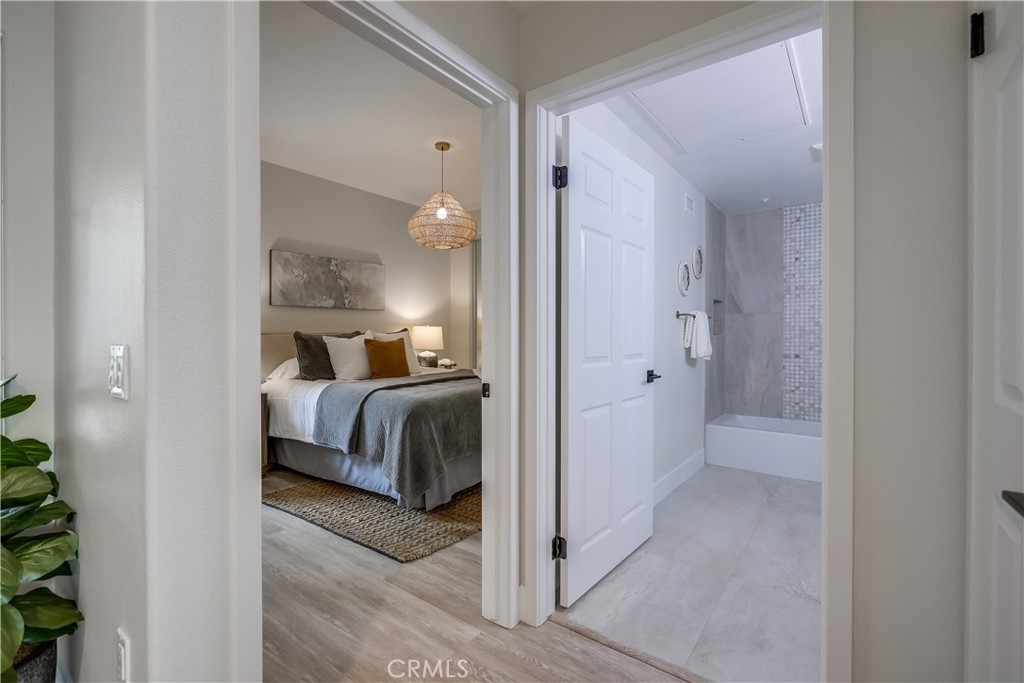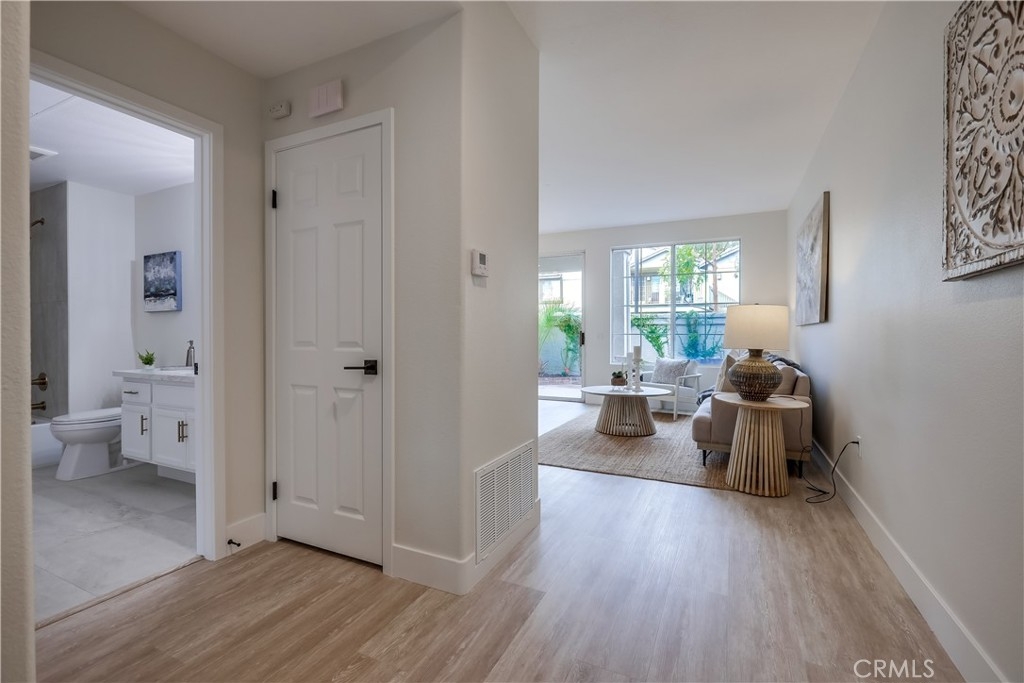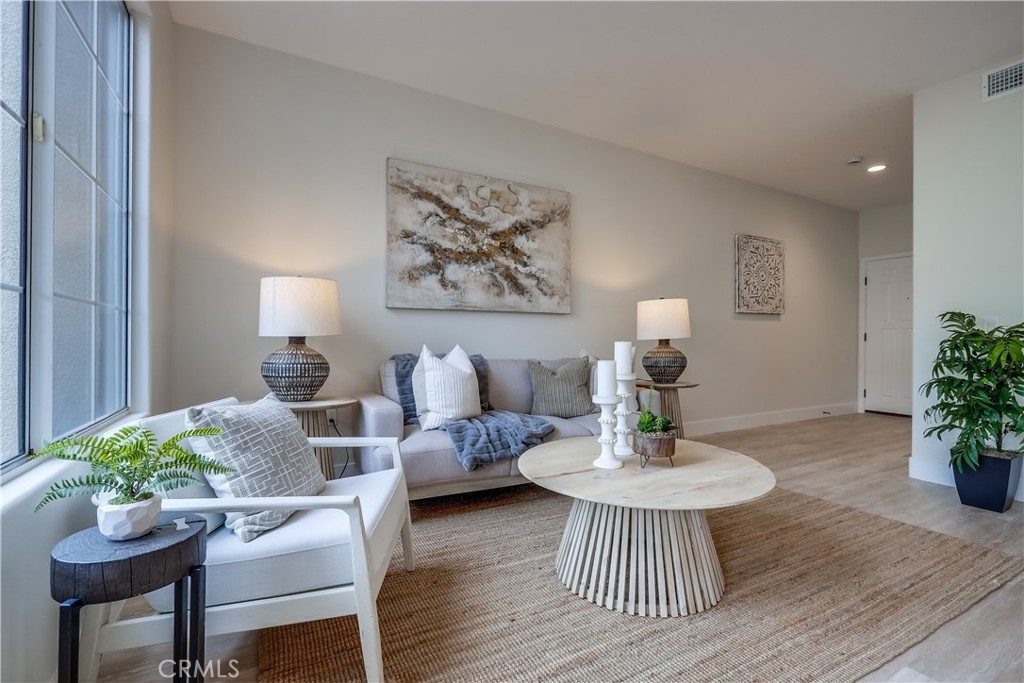 Gorgeous and Newly Remodeled Throughout with a high attention to detail and Stylish New Features and Upgrades, ideally located in the highly desirable Salerno Community in Foothill Ranch! Step inside this lower-level home and soak in the light filled interior and beautiful updates including new Central Air Conditioning, sleek new luxury vinyl plank floors, newly upgraded baseboards and casings, high ceilings, custom neutral paint palette, new light fixtures, and an open floor plan providing a superb living environment. The living room boasts a cozy fireplace with custom surround and is open to the dining area and kitchen, with direct access to the back patio creating an ideal indoor-outdoor living space. The light and bright kitchen boasts an abundance of storage cabinetry and has been beautifully remodeled with sparkling Quartz countertops, striking new tile backsplash, new cabinet hardware, new sink and faucet, new disposal, new stainless-steel appliances, and recessed lighting. The spacious bedroom is a peaceful retreat with new custom light fixture, mirrored closet doors, and new custom closet organizers. The bathroom has been thoughtfully redesigned and reimagined with new tile floors, new Quartz topped vanity, new cabinetry hardware, gorgeous new faucets and fixtures, new custom-tiled bath surround, new large, framed vanity mirror, new custom lighting, and all new plumbing and fixtures. Additional new upgrades include all new door hardware. The large back patio is a private oasis perfect for relaxing and entertaining loved ones with new landscaping and a convenient laundry closet with full size appliance hookups. This home also boasts a detached one car garage! This well-maintained community includes a community pool and spa, lounging and gathering spaces, and picnic areas. Just a short stroll to Foothill Ranch Community Park with tennis courts, sports courts, roller hockey rinks, sand volleyball courts, playground/tot lot, playing and sports fields, and picnic and BBQ areas. Within walking distance of numerous shopping and dining venues, fitness centers, Library, Foothill Ranch Elementary School, Borrego Park, access to Whiting Ranch Wilderness trails, and numerous hiking and biking trails! Easy Toll Road access and close to Irvine Spectrum Center.