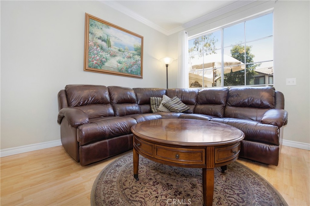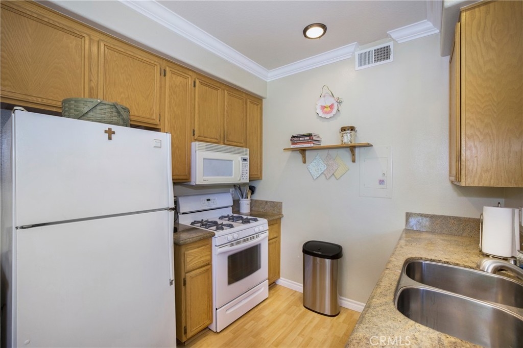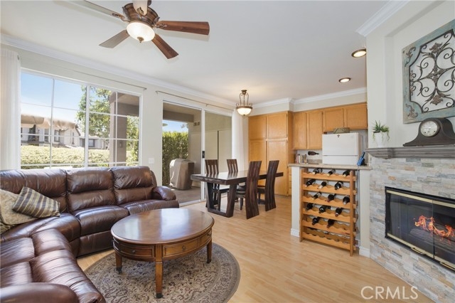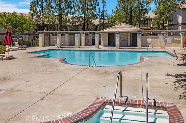 This sweet one-bedroom ground-level condo is located in the Salerno Community of Foothill Ranch. It offers a spacious and thoughtfully remodeled open-plan living with a beautiful custom stone fireplace, laminate flooring, crown moldings, and baseboards. A compact but practical kitchen with granite counters and ample space for the serious cook. The living room opens to a large inviting flagstone patio with more than enough space for grilling and weekend gatherings. The home has a jetted tub, a full-size washer and dryer, and a one-car detached garage. The Salerno Community Amenities include a large heated pool, spa, and BBQ area, plus an Olympic Sized Pool is available to Foothill Residents and is just around the corner! Ideal location in the heart of Foothill Ranch, with access to Award Winning Schools, Whiting Ranch Trails, parks, shopping, dining, and 241 Toll Road.