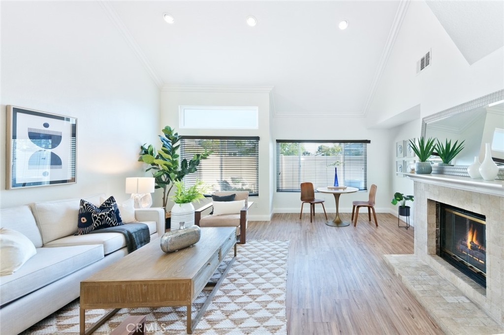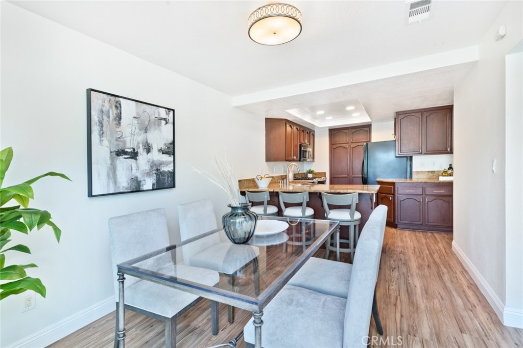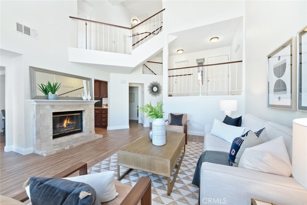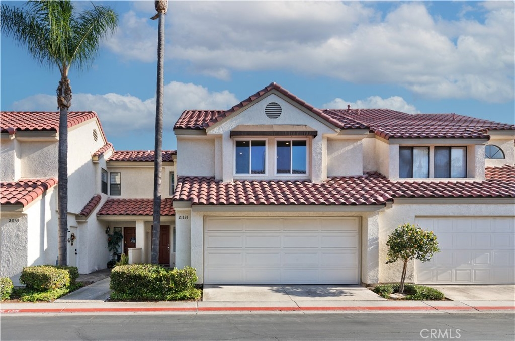 Welcome home to 21131 Avenida Magnifica! An incredible floor plan that opens to a stunning living space with cathedral ceilings, multiple seating areas and a focal stone fireplace. The separate dining room and kitchen are filled with natural sunlight from sliding glass doors that lead out to a peaceful and spacious backyard. The kitchen is well appointed with granite slab countertops, stainless steel appliances and tasteful finishes. Beautiful newer vinyl wood floors throughout and recently updated carpet in the bedrooms are completed with fabulous hardware and recessed lighting. The second story primary bedroom has two ample closets including one walk-in, a dual vanity and large shower. The secondary bedrooms are located on the top floor with a well-equipped bathroom. Featuring an attached large two car garage that has epoxy coated floors, AC and dual paned windows are just a few of the fantastic attributes of this lovely and tranquil home. This well maintained HOA includes a community pool, spa, clubhouse, tennis, pickleball and basketball court!