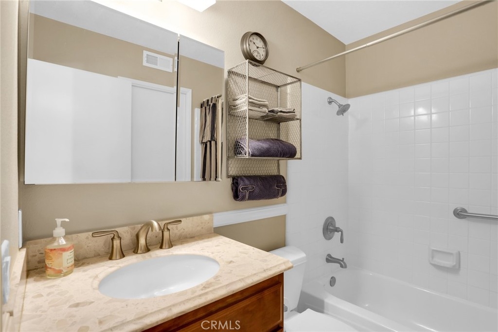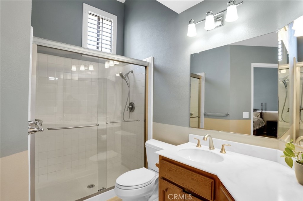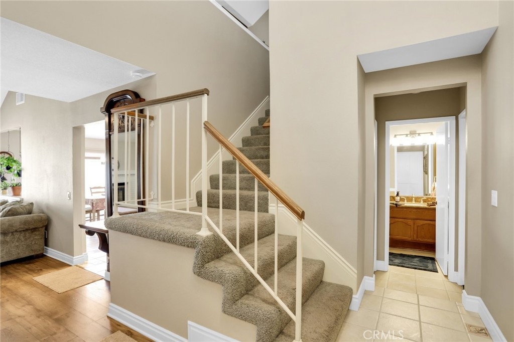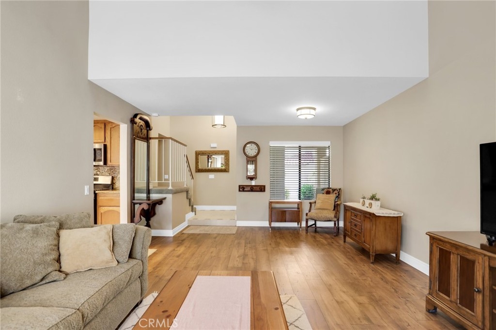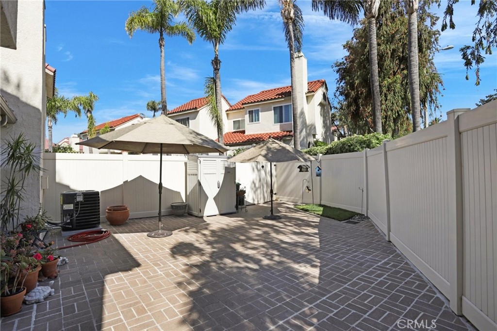 Beautiful End-Unit Townhome in San Remo Villas, Lake Forest! Welcome to this beautifully maintained 2 bed and loft/office/3rd bed end-unit townhome offering 1,628 sq. ft. of light-filled living space in the highly desirable San Remo Villas community. With two bedrooms plus a convertible loft, which many owners have made into a 3rd bedroom, this flexible floorplan offers ideal space for a home office, guest room, or additional living area. The inviting living room features new RevWood floating flooring installed in 2023, soaring vaulted ceilings, and a cozy fireplace. Throughout the home, you'll find high-quality ceiling fans with dimmable lighting—including three 3-speed fans and one 6-speed fan in the living room—offering both comfort and style. Plantation shutters upstairs add a touch of elegance. The spacious kitchen includes granite countertops, stainless steel appliances, and a large walk-in pantry. The adjacent dining area flows seamlessly into your private backyard retreat, complete with beautiful brickwork and stylish vinyl fencing—perfect for relaxing or entertaining. Upstairs, the expansive primary suite features vaulted ceilings, a huge walk-in closet, and a spa-like en-suite bath with dual sinks and a large walk-in shower. A second bedroom, full hall bath, and versatile loft complete the upper level. Additional highlights include a two-car attached garage with built-in storage and full laundry hookups, as well as updated heating and air conditioning systems. Owner has added gutters. Enjoy access to fantastic community amenities, including a pool, Jacuzzi, pickleball, tennis courts, basketball court, and clubhouse, all surrounded by beautifully maintained park space. Conveniently located near Tamarisk Park, top-rated schools, shopping, dining, hiking trails, and major freeways, this home offers the best of Lake Forest living. Don’t miss this exceptional opportunity—schedule your private showing today!