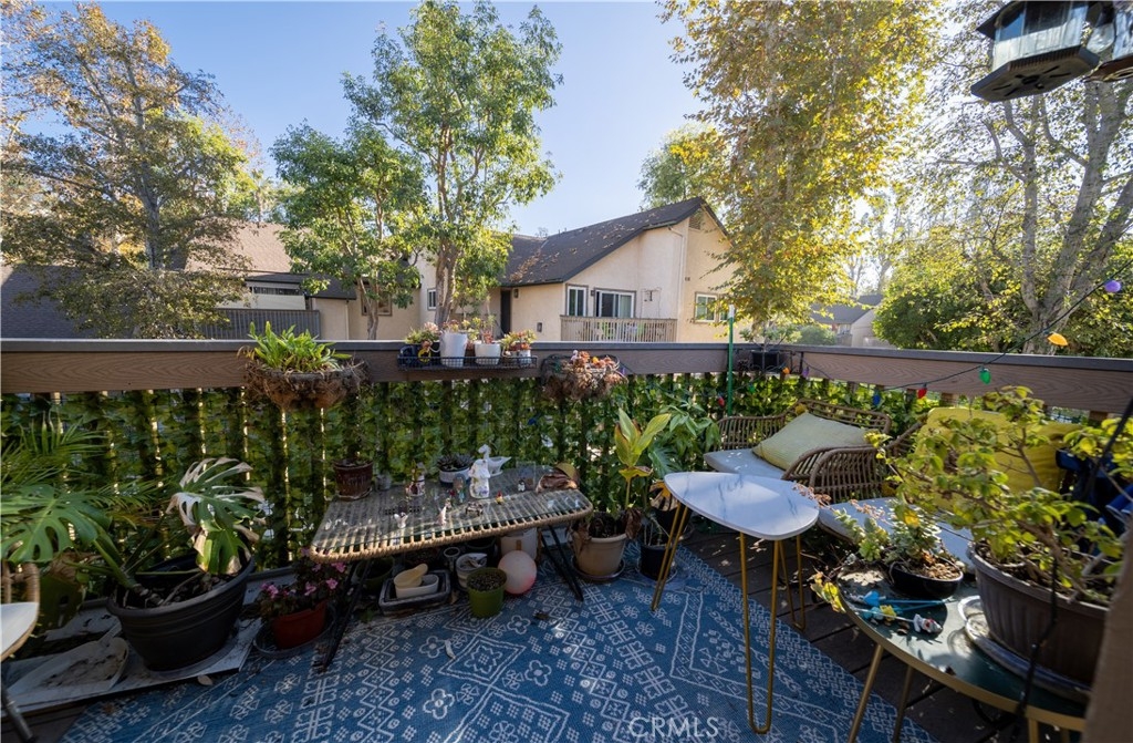 Vibrant & Artistic 2-Bed, 1-Bath Condo in Serene Serrano Creek Villas Discover a charming upper-level condo located in the tranquil Serrano Creek Villas community. Surrounded by, park-like grounds, this 2-bedroom, 1-bathroom home offers a delightful combination of artistic charm, natural beauty, and modern comfort. Step inside to a bright and inviting living space, enhanced by hand-painted murals that bring a vibrant, creative touch to the home. Modern kitchen boasts quartz countertops, eating area, ample storage space and enclosed laundry The airy living room opens to a private balcony, where you can relax and take in serene views of the beautifully landscaped grounds. Both bedrooms are generously sized, perfect for restful retreats, a home office, or creative endeavors. The remodeled bathroom is thoughtfully designed with modern features to meet your daily needs. Serrano Creek Villas is known for its peaceful ambiance, including a sparkling pool, soothing spa, and clubhouse—all set amidst mature trees and HOA maintained landscaping. Ample parking adds convenience to this serene community. Ideally situated near shopping, dining and local parks, this condo offers the perfect blend of accessibility and tranquility. Schedule your private tour today and experience its charm for yourself!
