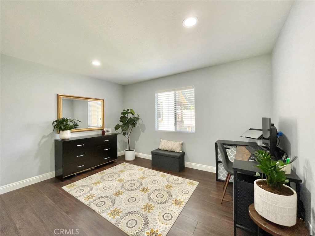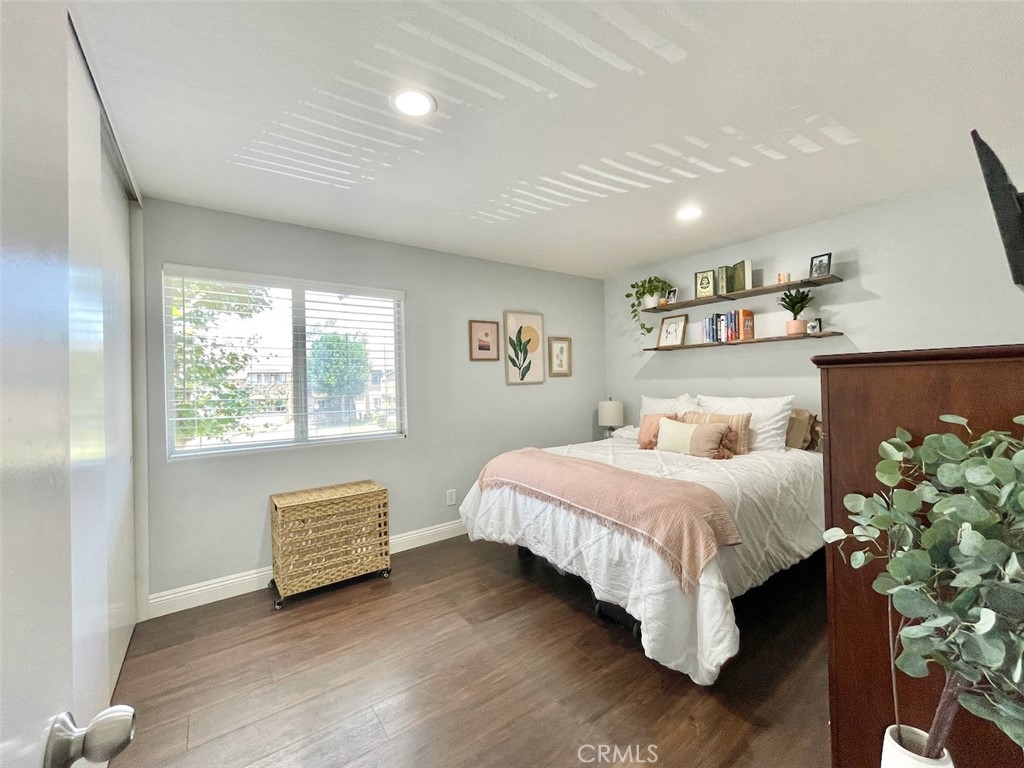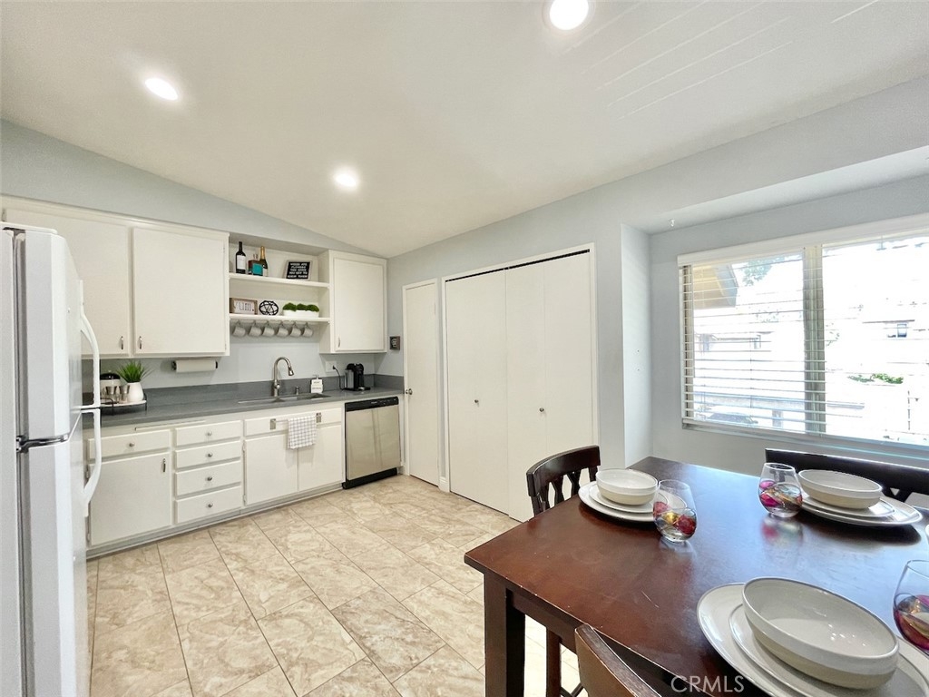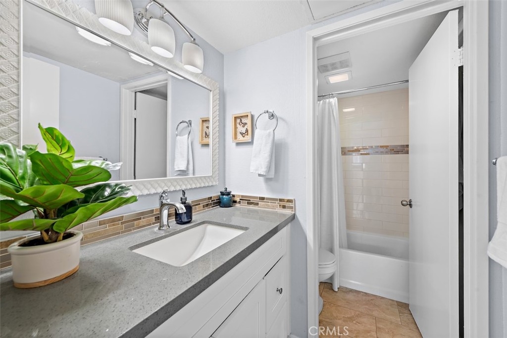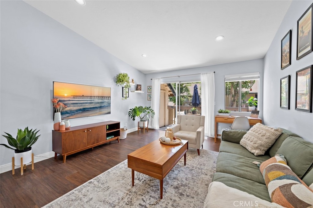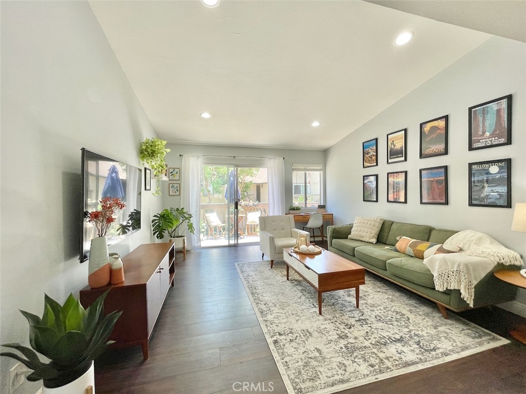 Tucked away in a serene location in beautiful Lake Forest, you won’t want to miss this lovely 2 bed 1 bath condo with the highly coveted upstairs location, overlooking lush greenbelts in the community of the Serrano Creek Villas. As you enter the home the spacious living room has large glass windows and sliding glass doors to the outdoor balcony, inviting an abundance of natural light bringing the beautiful outdoors, indoors, creating an Eichler mid century modern feel in the home. To the left of the entrance, the large kitchen features beautiful solid surface countertops, stone tile floors, and white wood cabinets complete with a hidden laundry area. The Master bedroom and guest room are spacious with plenty of closet space and natural light. The home also includes wide plank laminate flooring, smooth ceilings with recessed lighting, central air and all appliances are included. Parking includes one carport and plenty of off-street parking for family & guests. HOA dues include: Pool, water, trash and maintenance of grounds. The community is less than a quarter-mile away from Serrano Creek trail which gives you direct access to Whiting Ranch Wilderness Park. With nature trails the Lake Forest Sports Park, Irvine Spectrum, and plenty of shopping centers just a short distance away you have the perfect home life for your family & friends.