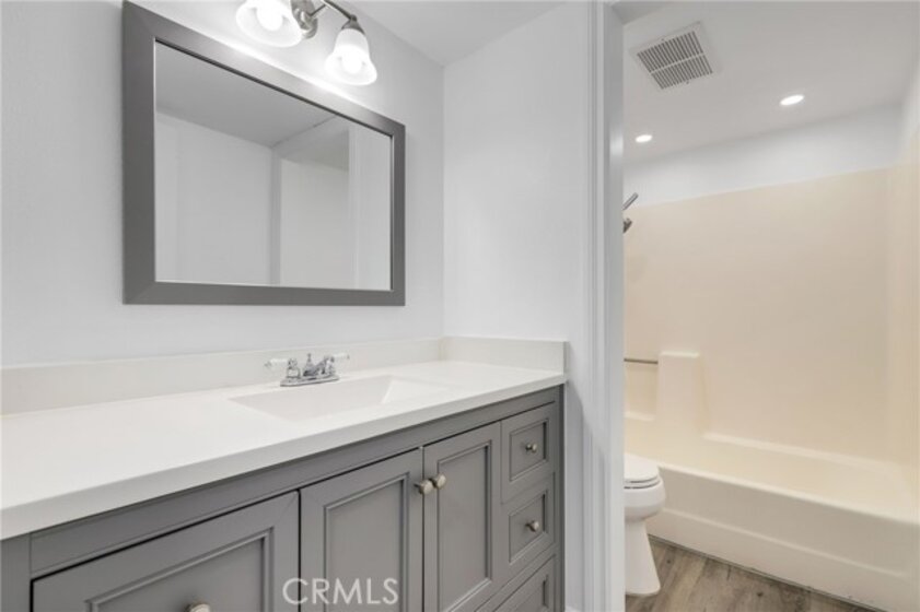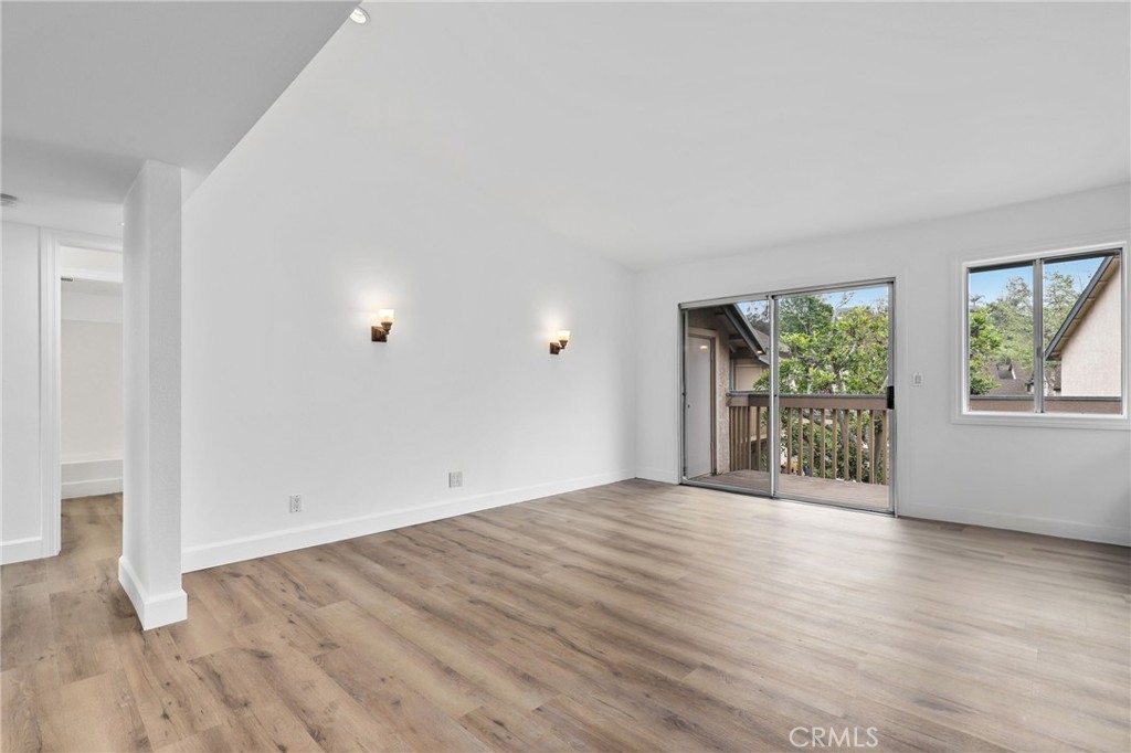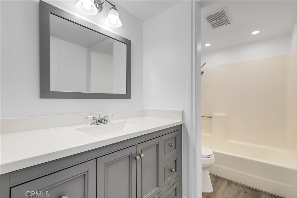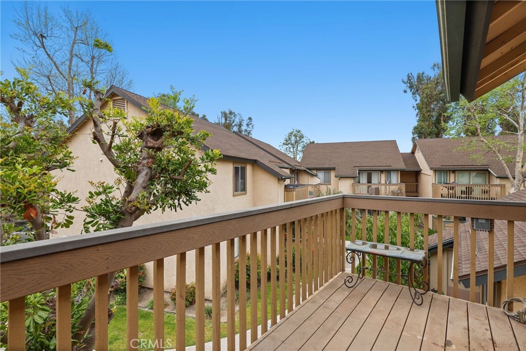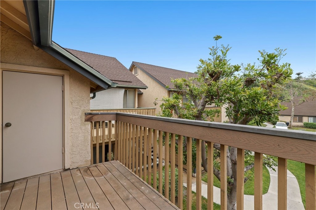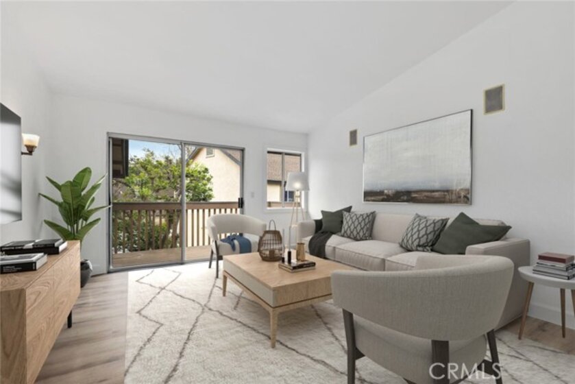 HUGE PRICE IMPROVEMENT! Welcome to this adorable remodeled upper level condo featuring spacious 2 bedrooms and 1 bathroom, in an excellent location within the community! As you enter, you’ll notice an inviting open floor plan with high ceilings, fresh paint, luxury Vinyl Plank wood flooring throughout, wide baseboards and plenty of natural light. The newly remodeled kitchen features brand new kitchen cabinets, quartz countertops with subway tile backsplash, brand new stainless steel appliances, a nice size pantry, and a convenient indoor laundry area for your washer/dryer. The two spacious bedrooms include mirrored closet doors and blinds. The bathroom has an upgraded vanity, lighting and fixtures and has plenty of space. Enjoy the balcony just off your living room where you can BBQ, relax and enjoy your mornings and evenings. The community of Serrano Creek Villas includes a pool, spa, clubhouse! The HOA dues cover trash and water. Parking includes 1 assigned parking space (#139) with plenty of guest parking close by. Short drive to Whiting Ranch Wilderness Park, hiking trails, shopping centers, restaurants, entertainment, freeway access and 241 Toll Roads. Do not miss this opportunity!