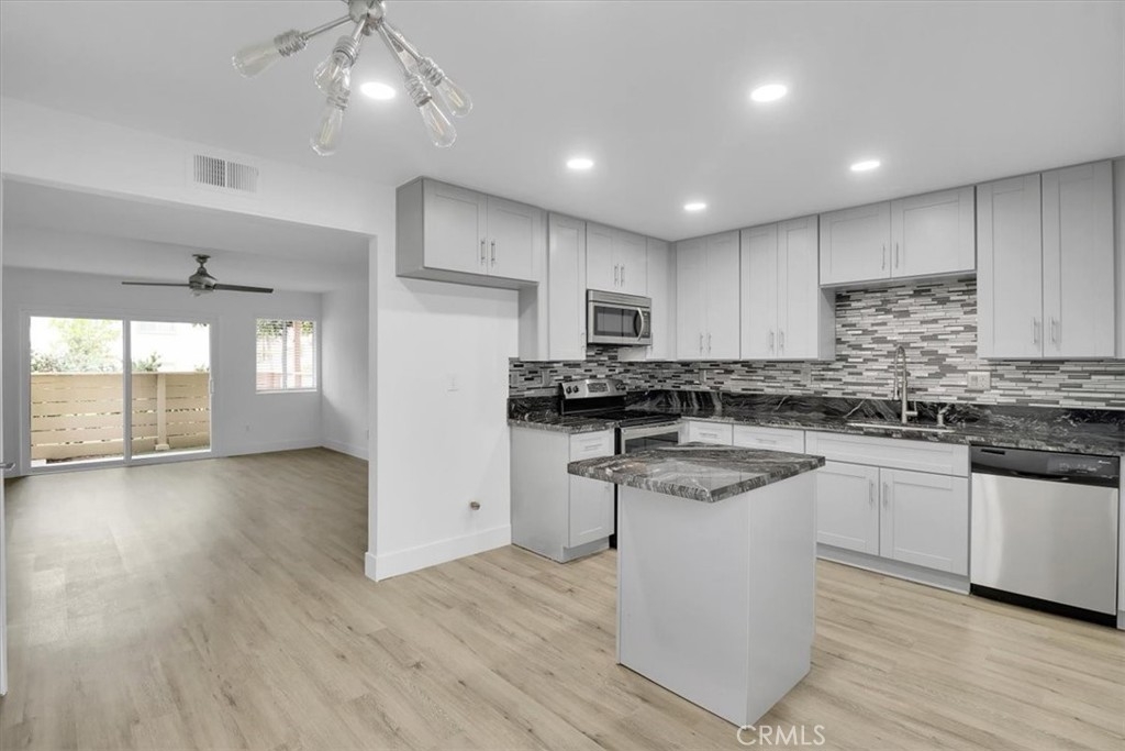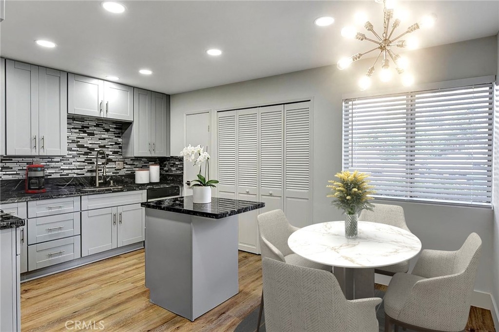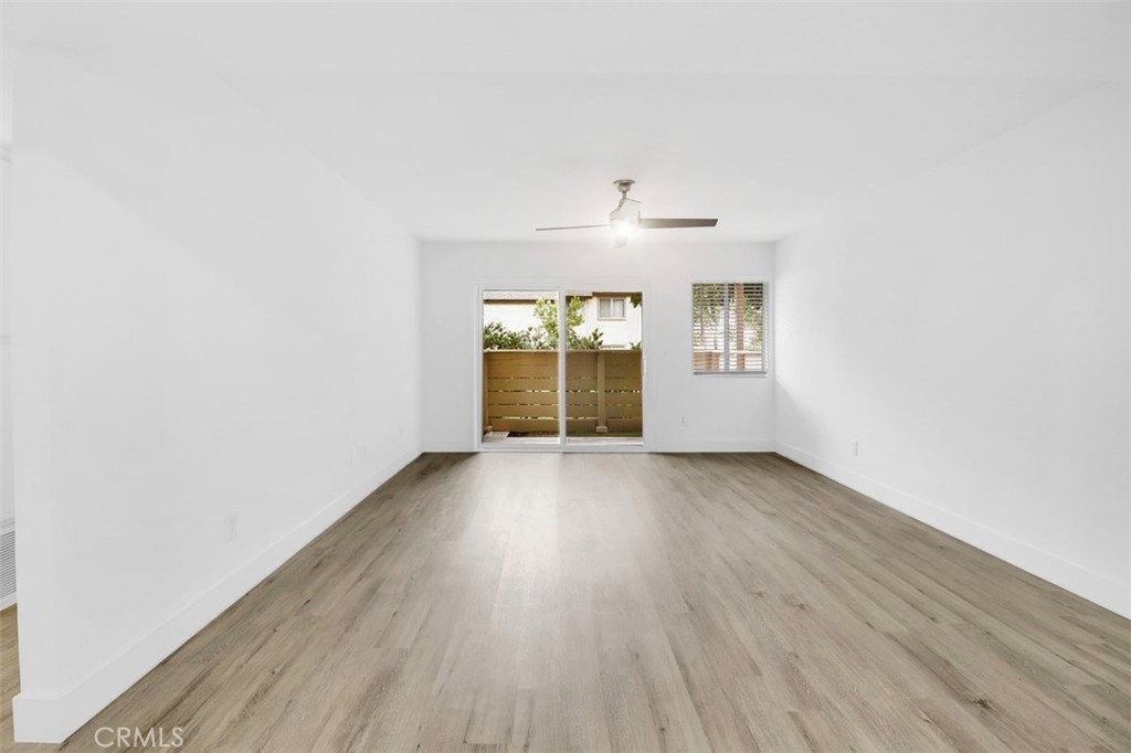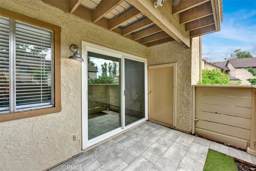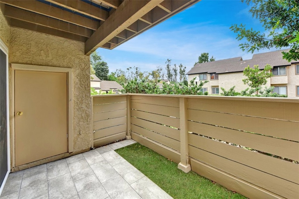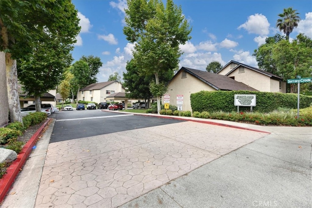 Beautiful recently remodeled 2 bedroom condo. Multiple upgrades throughout! Interior location end-unit. Featuring newly updated kitchen cabinets, countertops, gorgeous backsplash, custom island, custom additional lighting, pantry, inside laundry area which conveniently includes washer and dryer with extra cabinets. Entire home has been freshly painted and has new luxury vinyl flooring throughout. Open floor plan with light and bright living room also includes a beautiful modern ceiling fan which uses little energy and helps to improve air flow, cooling the home during the summer while also circulating the warm air during the winter. Also includes Nest to operate the AC unit. The new sliding glass door leads to the stunning tiled patio that also features a pet friendly artificial turf grass area. The two spacious bedrooms include new spacious mirrored closet doors and new blinds. Enjoy the large and functional bathroom that has been completely upgraded with new shower/tub combo, modern vanity, LED smart mirror and new toilet. The community of Serrano Creek Villas includes a pool, spa, clubhouse and guest parking. The HOA dues cover trash and water. Parking includes 1 assigned covered carport. Short drive to Whiting Ranch Wilderness Park, shopping center, dining and entertainment options and freeway access. Do not miss this opportunity.