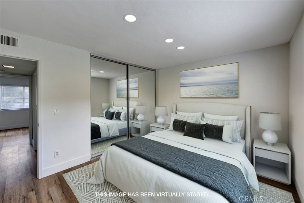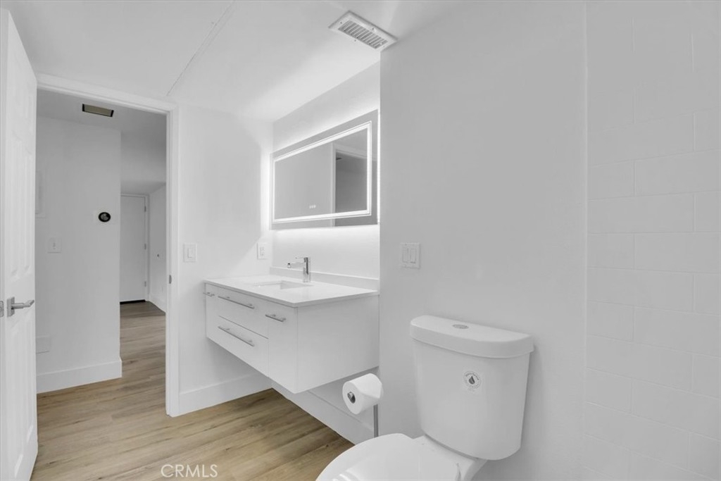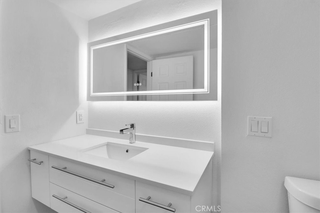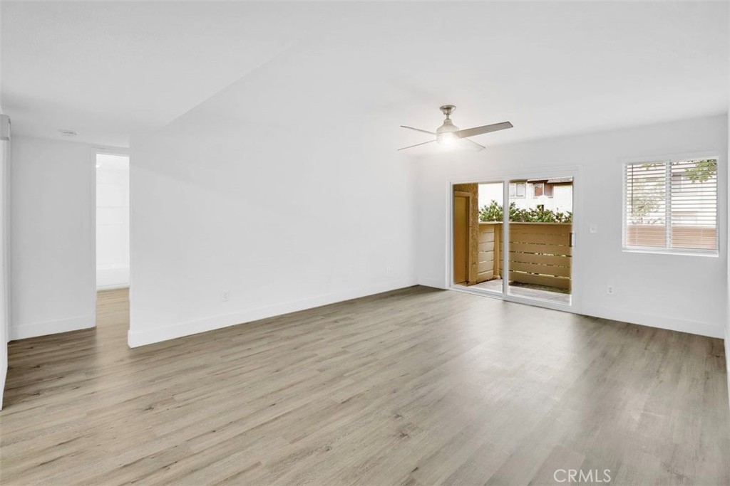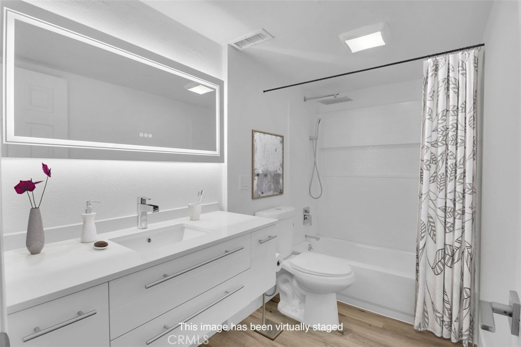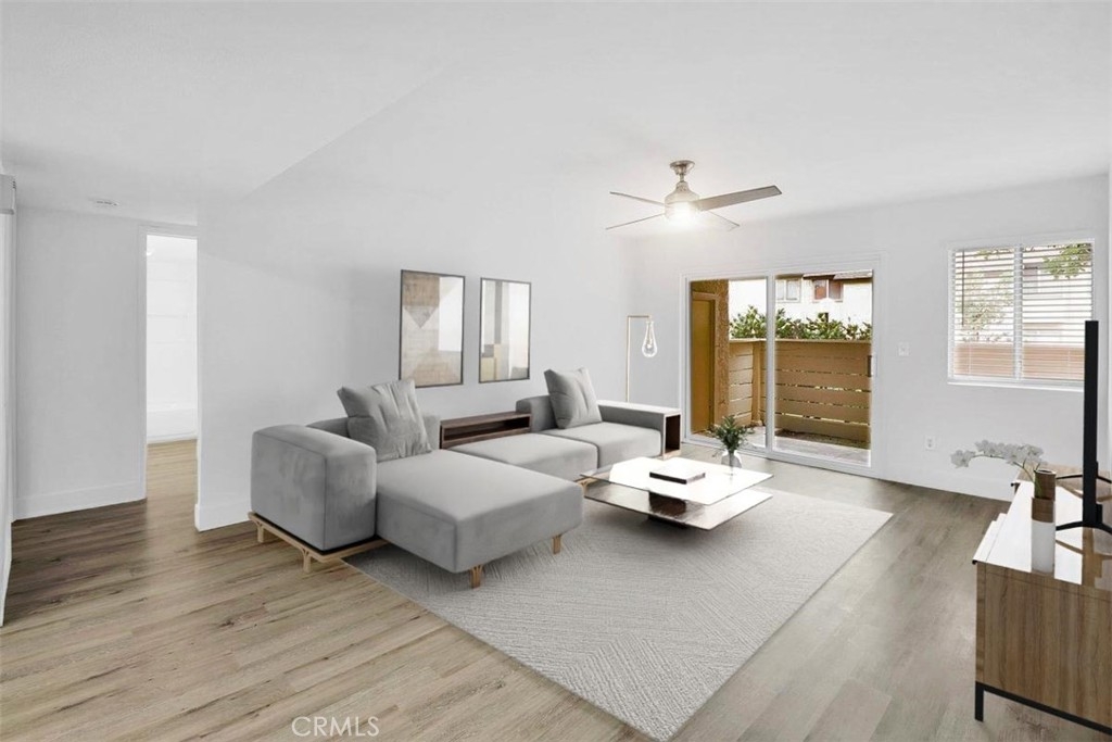 Beautiful recently remodeled 2 bedroom condo. Multiple upgrades throughout! Interior location end-unit. Featuring newly updated kitchen cabinets, countertops, gorgeous backsplash, custom island, custom additional lighting, pantry, inside laundry area which conveniently includes washer and dryer with extra cabinets. Entire home has been freshly painted and has new luxury vinyl flooring throughout. Open floor plan with light and bright living room also includes a beautiful modern ceiling fan which uses little energy and helps to improve air flow, cooling the home during the summer while also circulating the warm air during the winter. Also includes Nest to operate the AC unit. The new sliding glass door leads to the stunning tiled patio that also features a pet friendly artificial turf grass area. The two spacious bedrooms include new spacious mirrored closet doors and new blinds. Enjoy the large and functional bathroom that has been completely upgraded with new shower/tub combo, modern vanity, LED smart mirror and new toilet. The community of Serrano Creek Villas includes a pool, spa, clubhouse and guest parking. The HOA dues cover trash and water. Parking includes 1 assigned covered carport. Short drive to Whiting Ranch Wilderness Park, shopping center, dining and entertainment options and freeway access. Do not miss this opportunity.