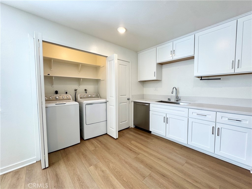 Tucked within the Serrano Creek Villas community in Lake Forest, this beautifully remodeled lower-level condo offers easy, single-level living with beautiful luxury vinyl throughout creating a clean and contemporary feel. The inviting 2-bedroom, 1-bath layout offers an open-concept space and private patio. The kitchen is complete with stainless steel appliances, refrigerator and a rare walk-in pantry—perfect for extra storage. It also includes an in-home laundry with washer & dryer included. Light-filled and move-in ready, this home is ideal for first-time buyers, downsizers, or anyone looking to enjoy low-maintenance living in a convenient, central location close to shopping, dining, and outdoor trails of Lake Forest. Serrano Creek Villas also offers a community pool, spa and clubhouse to enjoy all year-round.