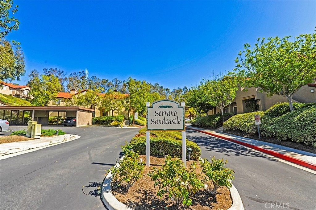 A beautiful view - from a private location in the Popular Serrano Sandcastle neighborhood! This lower level 2 bedroom / 2 bathroom condo is a lovely spot to call home. Featuring a cozy fireplace and central air, inside will be the perfect temperature all year. Laundry made easy with an included Washer and Dryer. Additionally, one covered carport and plenty of guest parking make daily commuting a breeze. Enjoy the community spa and playground area, plus, manicured grounds, water and trash are all included in the HOA fees. Close to schools, shopping, and restaurants. Awesome opportunity in South OC, California.