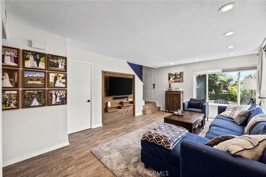 Enjoy this beautiful light and bright end unit with Peek-a-Boo Lake View from Livingroom with built-in under-stair storage and wood paneled entertainment wall including 1 half bath. Upstairs Boasts 2 beautiful Bedrooms with plenty of natural light. Spacious Dining area with views of the patio from Kitchen. New AC unit was added 2018. Wood look Vinyl Flooring added 2018 along with newer recessed lighting and updated electrical outlets and switches. New Toilets and an upgraded full bath upstairs in 2020. Conveniently located washer and dryer area with custom built barn doors upstairs gives a cool hip vibe to the home. Upstairs Bedrooms have beautiful high vaulted ceilings with walk in closets. Vinyl dual pane windows added December 2019. Single car garage and 1 assigned additional parking space. HOA 2 includes the Sun and Sail Club at Lake Forest Lake. This includes, Recreational Center, Fitness Center, Volleyball and Tennis Courts, 4 Pools, Spa and Sauna.