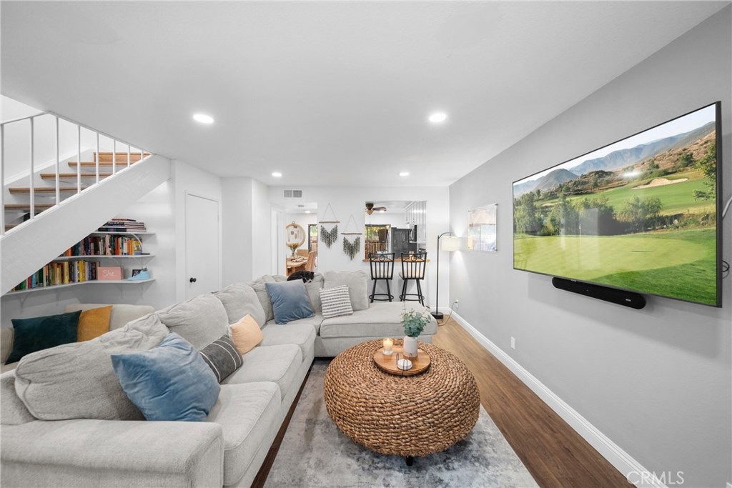 Welcome to your beautifully remodeled townhome in the sought-after Serrano Woods community! This charming 2-bedroom, 1.5-bath unit offers modern living with all the conveniences you desire. Enjoy the luxury of your own private laundry and the convenience of a 1-car garage. Step outside to your outdoor patio, perfect for relaxing or entertaining, featuring lush turf and a mounted outdoor TV for those cozy nights under the stars. The community is FHA and VA approved, making it a perfect choice for buyers seeking a welcoming neighborhood. As a resident, you’ll also gain access to the exclusive Sun and Sail Club, which boasts a recreational center, fitness center, pickleball and tennis courts, and an impressive four pools, plus a spa and sauna for ultimate relaxation. Located just a short walk from Lake Forest Lake, you’ll have the perfect blend of outdoor adventure and community amenities right at your doorstep. Don’t miss out on this incredible opportunity to call Serrano Woods home! Schedule your showing today!