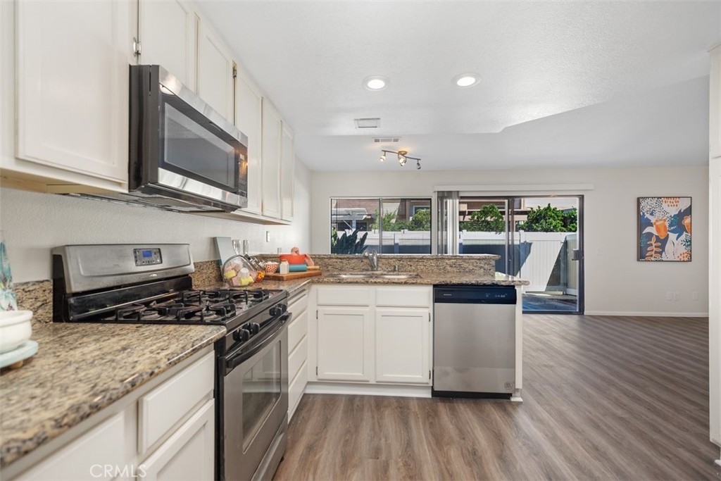 Welcome to this beautiful and move-in ready home in the heart of Lake Forest! This spacious home offers 3 bedrooms, 2.5 bathrooms, a living and dining room with fireplace, family room and breakfast nook with a sliding door leading to the large yard. This home has brand-new waterpoof vinyl flooring, carpet and a fresh coat of paint. The kitchen features granite counters and stainless steel appliances including a brand new over-the-range microwave and dishwasher. There is also a laundry room and a large powder room to complete the main level. The second story includes a spacious master suite with a walk-in closet, walk-in shower and dual sinks. One of the best things about this home is the abundance of natural light. You will be just minutes away from shopping, freeway access, Irvine Spectrum and beautiful Serrano Creek Park. Come take a look for yourself!