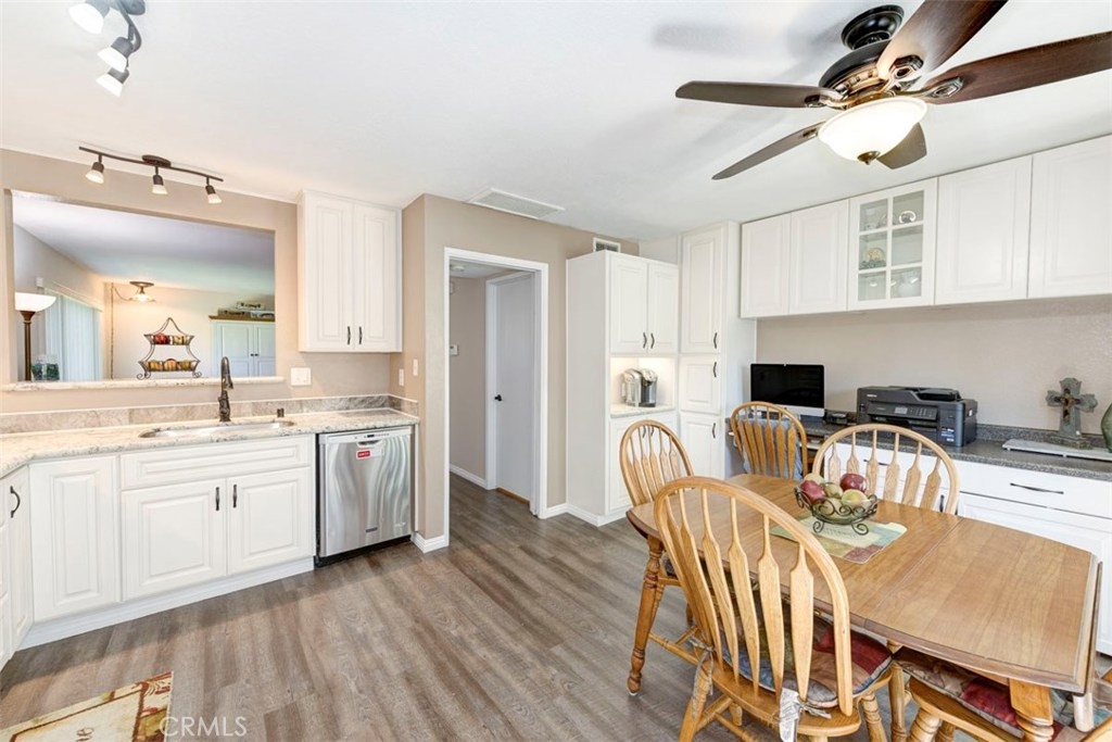 This corner two-story Smart townhome has it all, beginning with amazing park and greenbelt views. Throughout the home you’ll discover newer improvements including Paradigm eco-friendly flooring, carpet upstairs and textured ceilings. The kitchen boasts real wood kitchen cabinets with soft-close drawers, stone countertops, an abundance of kitchen cabinets with under cabinet lighting, a pantry and an espresso/smoothie station. Also recently upgraded are double-paned windows and slider, bathroom cabinets and faucets, baseboards, lighting, and custom vaulted ceilings in both bedrooms. Outside you’ll notice newer fencing and garage door. This home also has two extra custom closets in main bedroom with additional rods and built-in shelves. Extra storage cabinets and closets can be found throughout the home. This Smart Home features a Defiant electronic front door lock, three Linkind smart lights, a newer thermostat and an Amazon Dot. Enjoy the large pool and spa and 2 tennis courts and basketball court within the Hillsford Community.