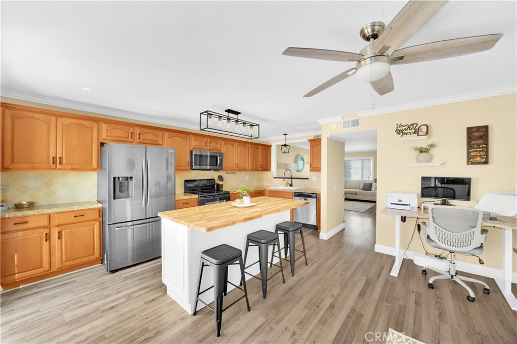 This move-in ready, beautifully updated townhome is located at the end of a quiet cul-de-sac, surrounded by trees and a lush greenbelt in the highly desirable Sycamore Glen community. It features a private entry and a spacious living area. The open-concept kitchen features a custom-built island with a butcher block countertop, large drawers, a built-in double trash can access, and a brand-new farm style sink and faucet. The kitchen is open to the dining room (currently used as a small office space). This townhome is perfect for entertaining with its expansive views of the park and greenbelt directly behind the patio. Upstairs, you will find two spacious bedrooms, a full bath, and a convenient full-size laundry room. The primary bedroom has sweeping views of the park, includes a walk-in closet with attic access via a pull-down ladder. Throughout the home, you’ll find thoughtful upgrades including new laminate flooring, double-pane windows, granite countertops, a shiplap accent wall in the kitchen and living room, updated bathroom shower, light fixtures, fog free bathroom mirrors and more. The single car garage as ample space for car parking or storage. The HOA has made recent improvements including new fencing, repiping all units, and a roof replacement within the last decade. The community also offers plenty of guest parking, a pool, and tennis courts. With its fresh remodel and prime location, this townhome won’t last long on the market!