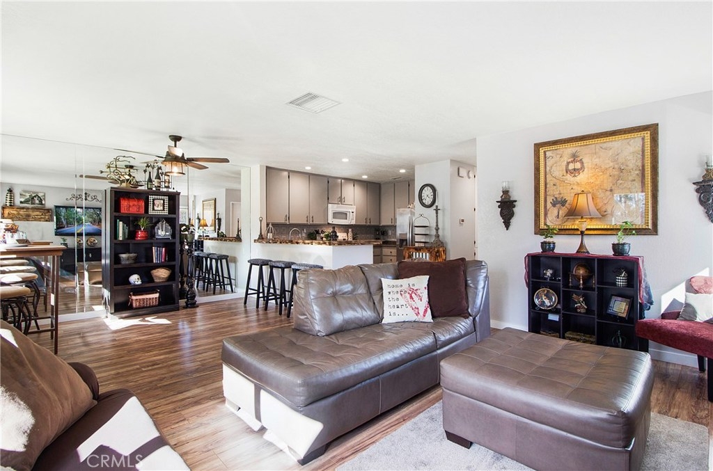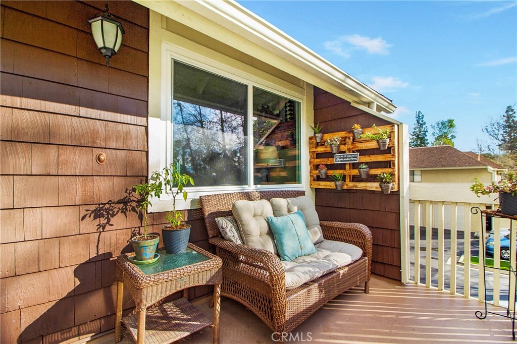 Don't miss this turnkey, cozy condo in the heart of Lake Forest! This Sycamore Glen TWO Bedroom, ONE Bath second-floor home is an end unit positioned on the cul-de-sac, a prime location within the community. Sunrise and park views make waking up here a dream and the accessibility to dining, shopping, schools, parks and commutable freeway access makes living here a joy! The open concept living area includes a generous family room gathering area, a remodeled kitchen, a dining nook, mirrored walls, a breakfast bar, newer vinyl windows, an all-new HVAC system, an oversized walk-up attic offering tons of storage, natural wood tone flooring throughout, a large, separate laundry room, a remodeled bathroom, neutral earth tones and two large bedrooms, plus a 1-car garage. The community has a private, association pool and tennis courts, plus access to trails and local parks. There are so many reasons to love living in Lake Forest - so don't let this opportunity pass you by!