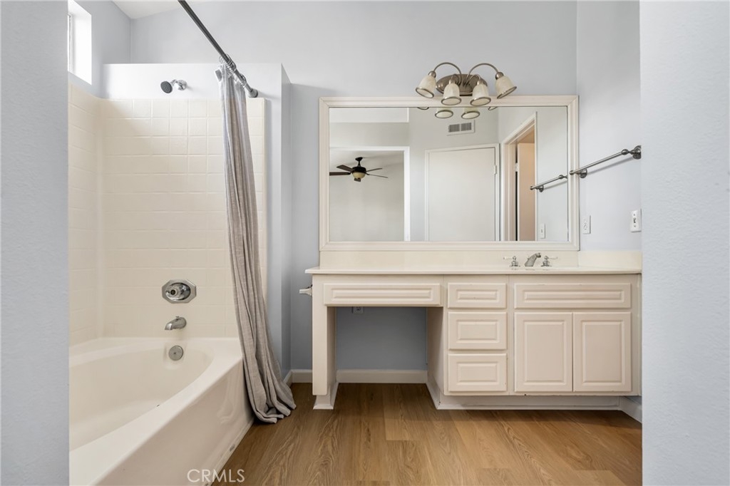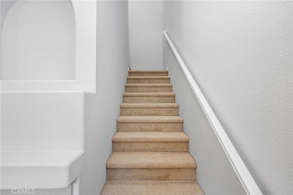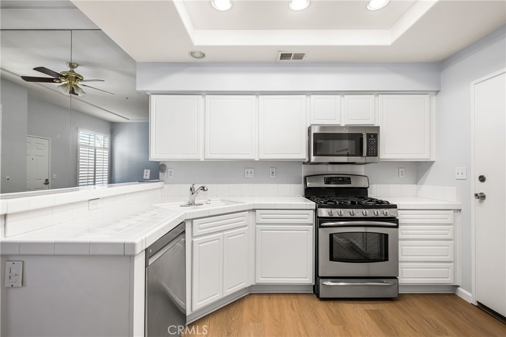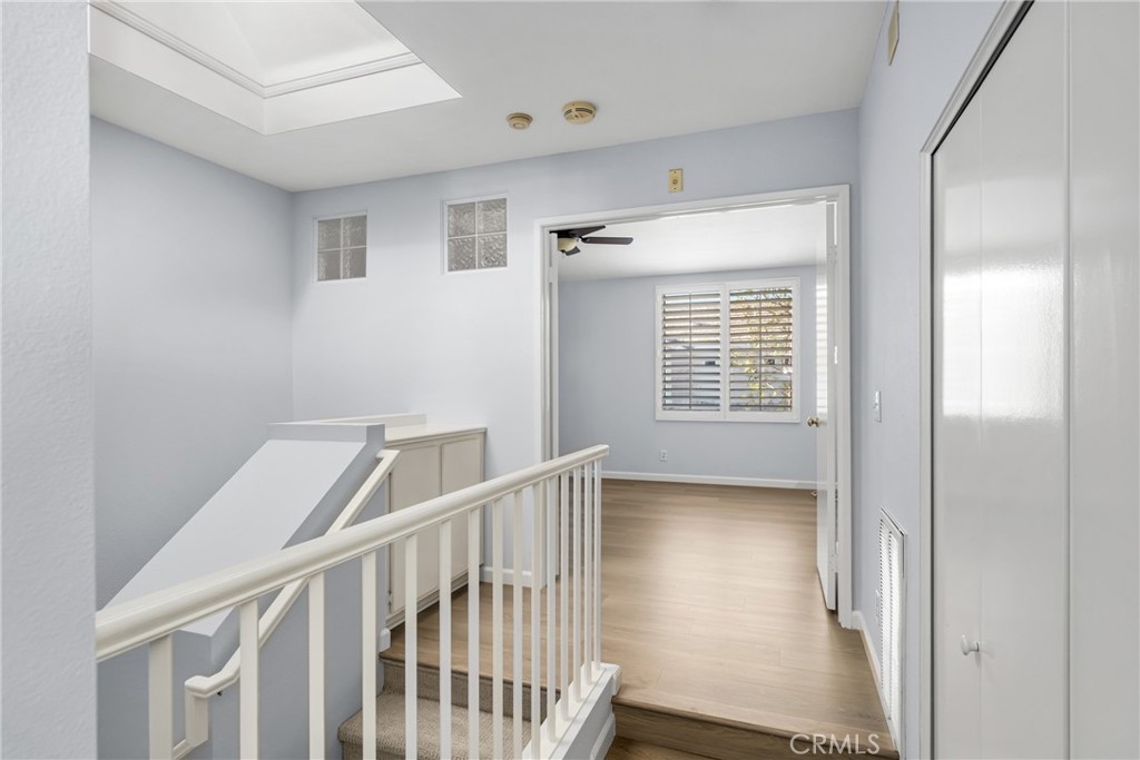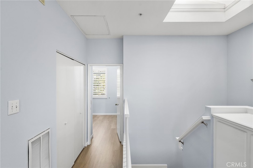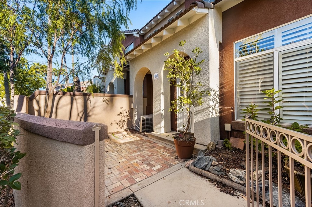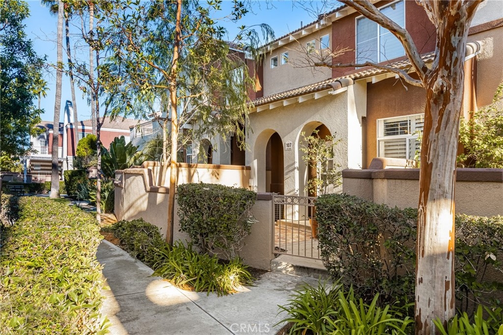 Welcome to this fabulous townhouse in the highly desirable Vineyards Community in the wonderful hillside community of Foothill Ranch. This light and bright 2 bedroom, 2.5 bath home with high ceilings, loads of windows, and direct access from the two car garage, is just what you've been waiting for. You’ll love this prime and serene inside tract location with a gated front patio. This entire home has been freshly painted in a neutral designer color, with newly installed luxury vinyl. The large, sunny kitchen features a breakfast bar, recessed lighting, stainless steel appliances, and plenty of cabinet space for storage. The living room is spacious with a mirrored accent wall and has a cozy and inviting fireplace. Custom upgrades include plantation shutters, ceiling fans, mirrored wardrobes, and closet organizers. There's a convenient downstairs powder room. Upstairs boasts a large primary suite with high ceilings, a ceiling fan, a bathroom vanity, an oval soaking tub, and a walk-in closet. The secondary bedroom has a full bathroom with a private balcony. The upper hall skylight allows for naturally infused sunlight. Vineyards' residents enjoy resort-style amenities including a pool/spa and children's playground. This townhouse is conveniently located close to the 241 toll road, and award-winning schools, and is just minutes from Whiting Ranch Wilderness Park with its world-class mountain biking and hiking. Welcome Home!!