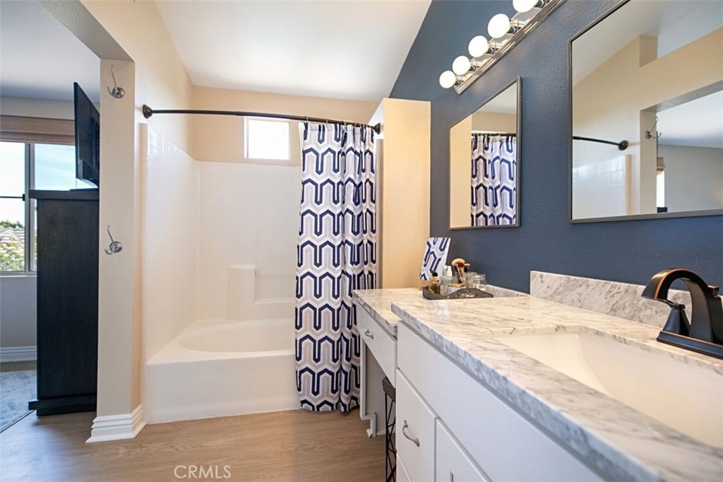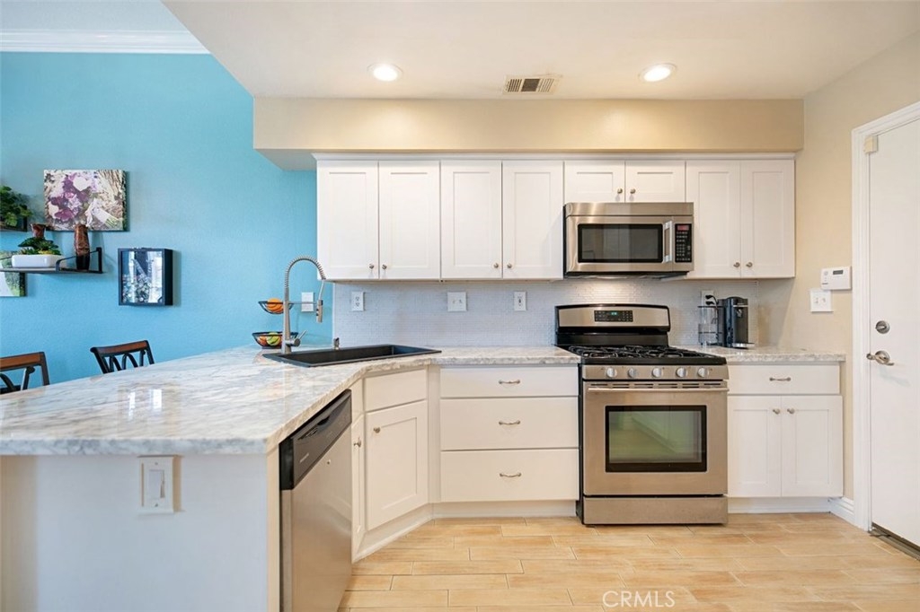 THIS IS THE HOME YOU HAVE BEEN WAITING FOR! Updated 2 bedroom, 2.5 bath w/ATTACHED FULL size 2 CAR GARAGE in "Vineyards" of Foothill Ranch! You are welcomed by a PRIVATE PATIO, perfect for entertaining, then flow into the spacious natural light filled home with HARDWOOD STYLE TILE flooring, inviting FIREPLACE and HIGH ceilings. It’s rare to find such high end timeless design elements in the highly UPGRADED KITCHEN w/ MARBLE countertops, STAINLESS steel appliances, modern FARMHOUSE style sink, high arc gooseneck faucet, SHAKER style white cabinetry doors, PANTRY, and large MARBLE PENINSULA with seating. Stay comfortable and SAVE ENERGY with the smart “NEST” learning thermostat. Upstairs, an INDOOR LAUNDRY room and 2 large master bedrooms, WOOD LAMINATE flooring & carpeting w/UPGRADED pad to reduce noise from upstairs to downstairs. The first master bedroom features VAULTED ceilings, hills VIEW, WALK-IN closet, shower, oversized soaking tub, toilet room, MARBLE countertop with make-up vanity. Master bedroom number 2 features a private BALCONY and hills VIEW. You’ve got it all: Newer construction, NO MELLO ROOS, remodeled kitchen/bathrooms, recently painted interior, high ceilings, PRIVACY w/NO ONE ABOVE OR BELOW, STORAGE, association POOL, SPA & PARK, acclaimed schools, excellent walkability to shops & restaurants, access to 241 Toll Road, Foothill Ranch Towne Center, Irvine Spectrum, parks, beaches, and trails! Hurry, homes in this area do not last!