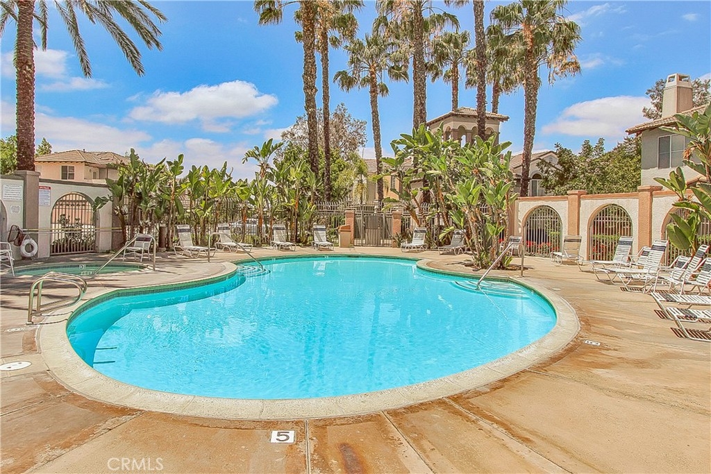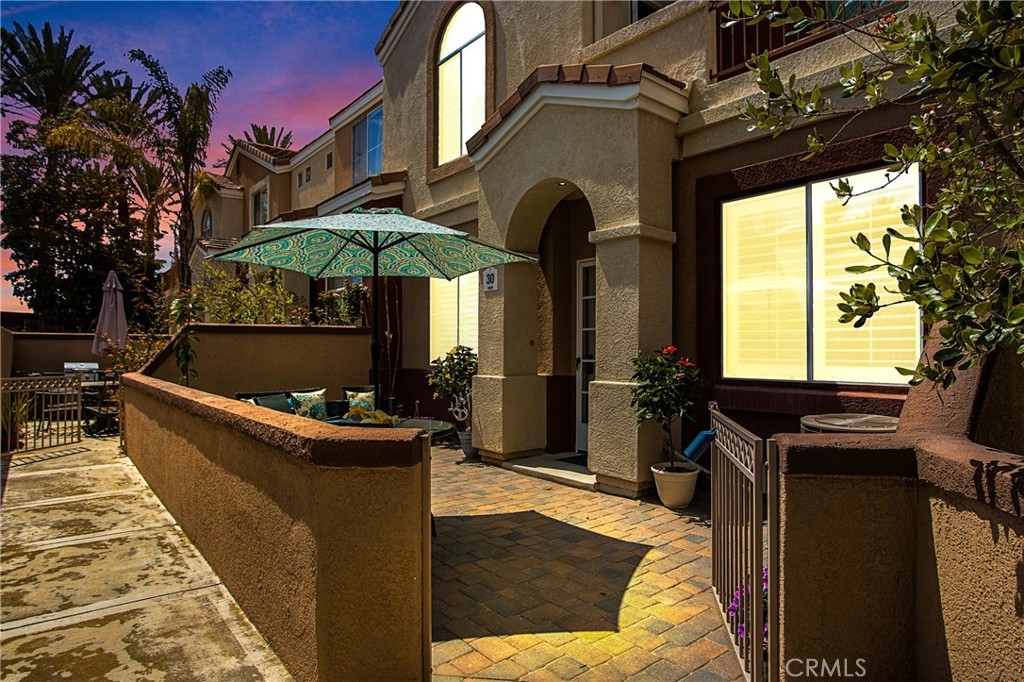 Beautiful 2 bedroom condo WITH AN OPEN LOFT, 3 bathrooms, and located in a fabulous neighborhood. This townhouse style home is located in a private secluded area of the community that overlooks a greenbelt. It also has city light and mountain views from the loft and upstairs balcony! This recently upgraded home includes custom tile flooring that looks like wood, custom baseboards, plantation shutters and an open concept floor plan. The first level includes the living room which has a fire fireplace, a formal dining room, a half bathroom, and an open gourmet kitchen with granite counters, stainless appliances, and lots of cabinets. The upstairs features an open loft and a view of the mountains from the balcony. There are many windows that bring in a lot of natural light. The master bedroom has vualted ceilings, two closets inlcuding a walk in, and a private patio. The master bathroom has high vaulted ceilings, a double sink vanity, big soaking tub and private toilet room. There is also a laundry room upstairs. The 2 car garage is oversized with an additional storage room. There are new pavers in the front yard with an open section so you can plant your own private garden! This complex is very well maintained and you are close to shopping, restaurants, movies, banks and toll roads. Home comes with an additional parking spot and there is plenty of open parking on the street. The loft could be converted into a small 3rd bedroom.