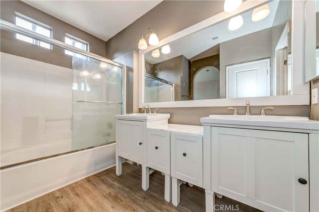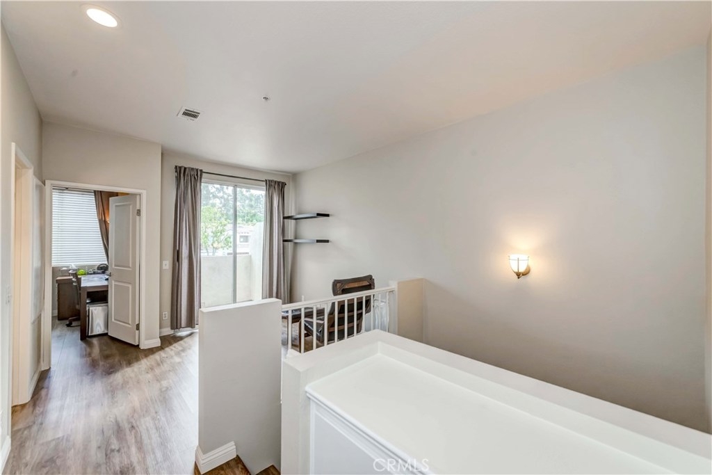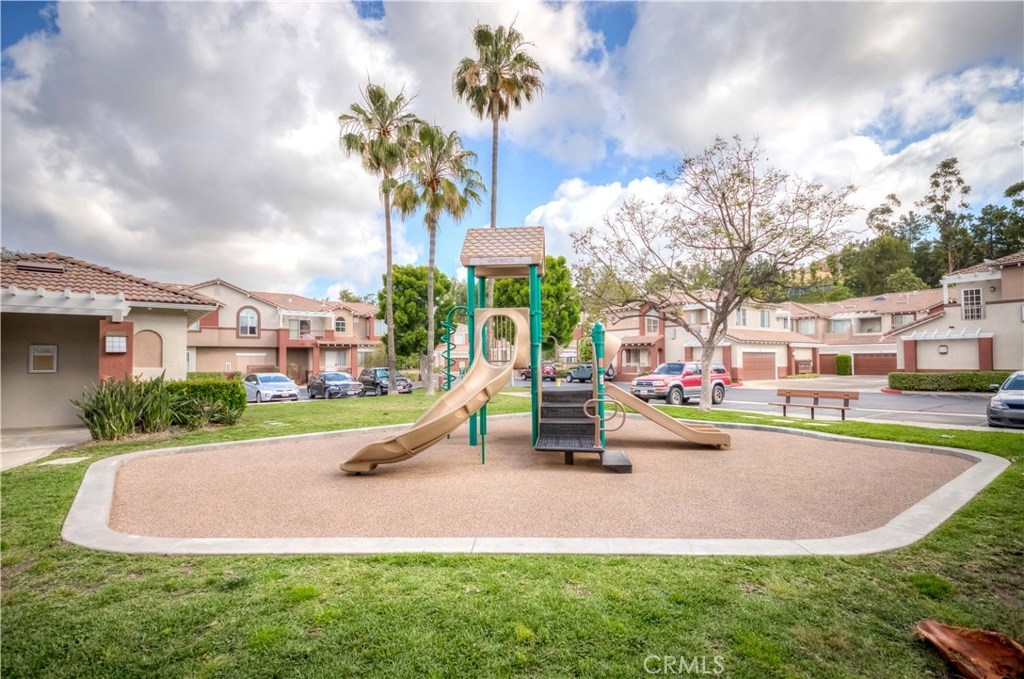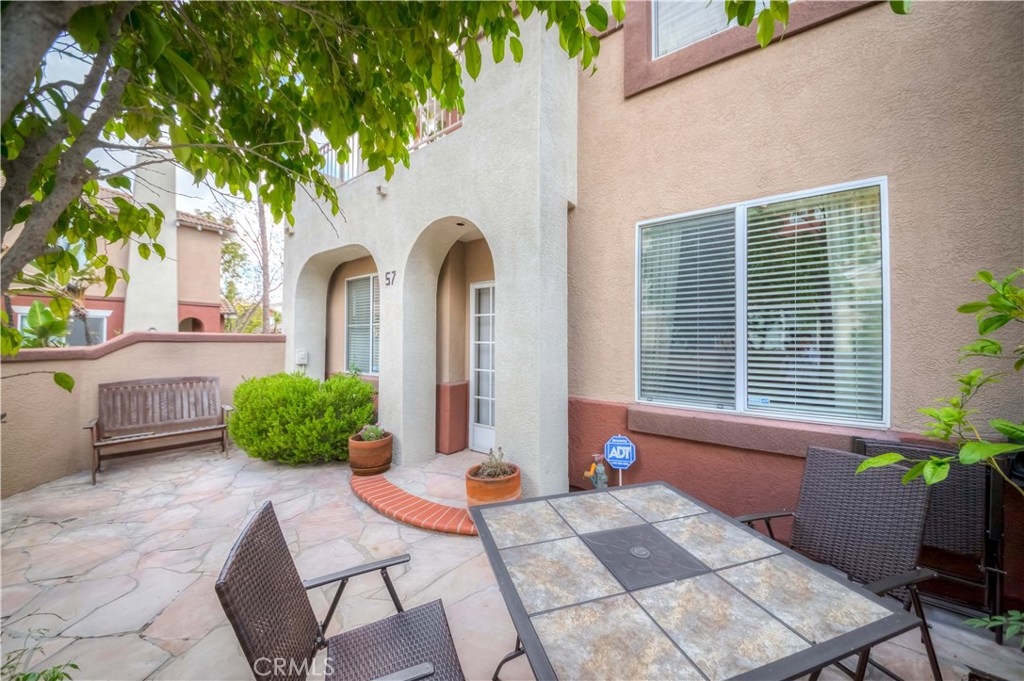 This gorgeous townhome is located in the highly sought after community of the Vineyards in Foothill Ranch. Resort style amenities including parks, pool/spa and play ground. The gated patio is spacious with stone accent. A large bright living room with fireplace. The spectacular kitchen has quartz counters with accented tile backsplash and stainless steel appliances. There is a convenient half bath in ground floor. Upstairs master bedroom includes walk-in closet and dual vanity in master bath and secondary bedroom with open loft that could be easily converted to an office. Upper level deck for relaxation. Tile & Wood floor throughout home. Direct access two(2) car garage with lots of storage space.