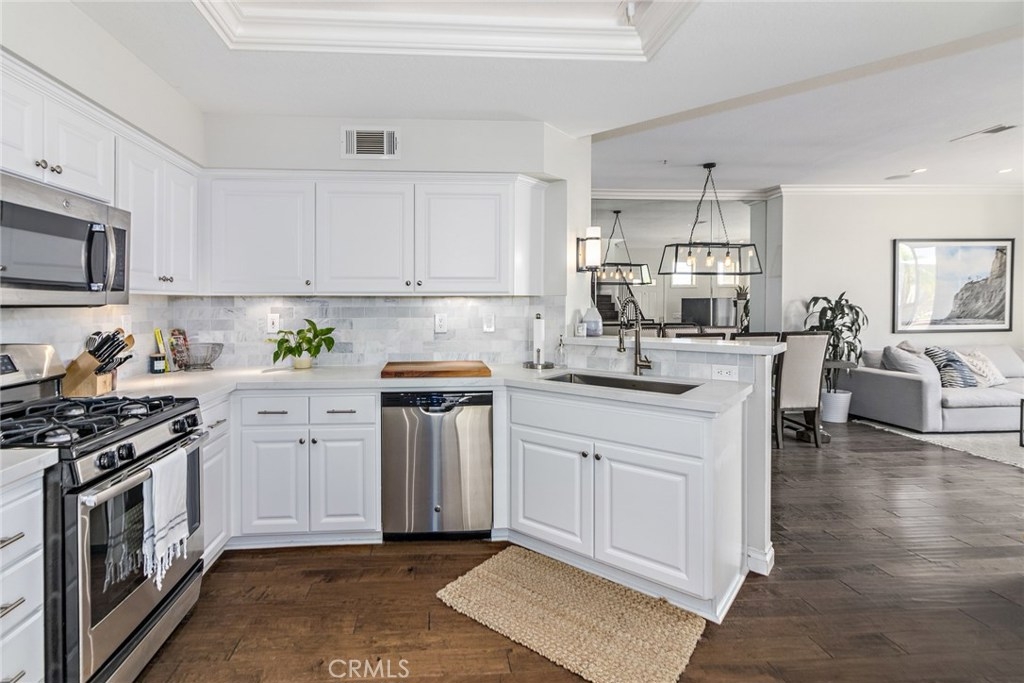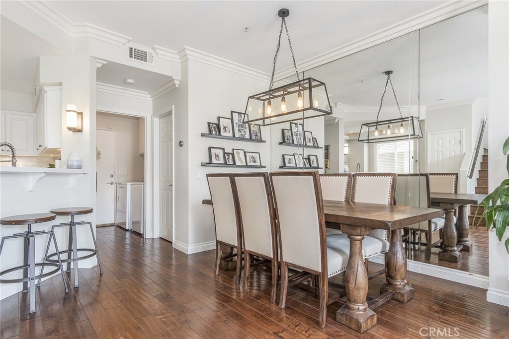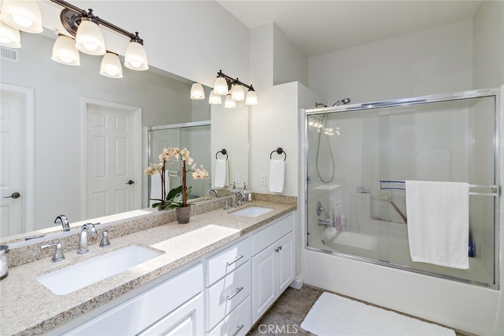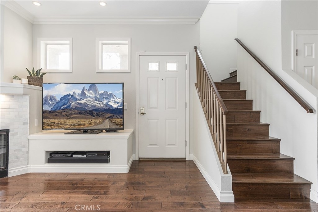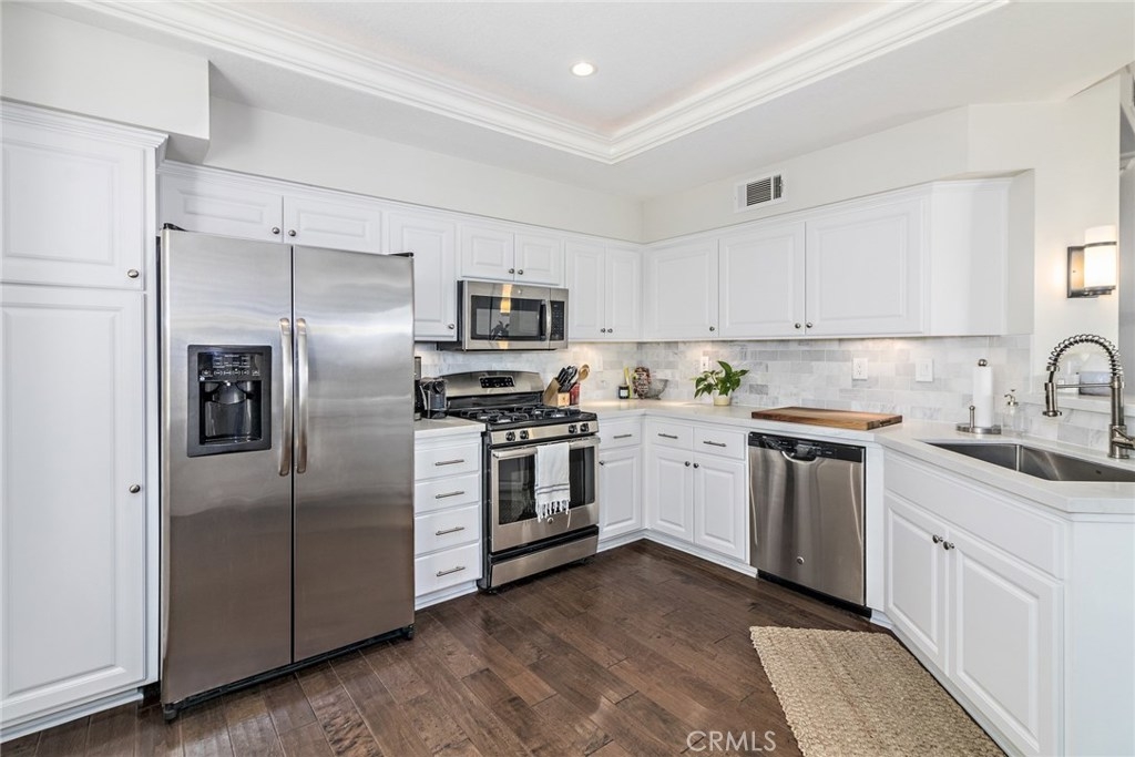 Welcome Home! This Gorgeous Corner Lot In The Highly Sought After Vineyards Community Of Foothill Ranch Exemplifies South Orange County Living At It’s Finest. This Lovely Condo Boasts The Largest Floor Plan In The Community And Features: Custom Mohawk™ Hardwood Floors, Kitchen is Fit for a Gourmet Chef, and Lots of Storage Space with a Large Pantry. Quartz Counter Tops, Updated Kitchen Sink, Faucet and Back Splash, Built In Surround Sound, Gas Fireplace, and Dual Pane Windows Throughout. Open and Inviting Living Space with Crown Molding Leads To A Large Outdoor Patio, Perfect For Entertaining Guests And Enjoying Romantic Sunsets. Attached 2 Car Garage Features Epoxy Floors With Lots of Storage Space. Large Upstairs Master Suite Includes A Walk In Closet With Custom Shelving That Transitions Elegantly Into A Highly Upgraded Master Bathroom. Upgraded Dual Vanity And An Over sized Bathtub Provide The Perfect Atmosphere For Relaxation After A Long Day. Both Guest Bedrooms Feature Greenbelt Views With Plenty Of Natural Light And Privacy. Vineyard's Residents Enjoy Resort Style Amenities including Parks, Pool/Spa, Tennis Court, & Playground. Enjoy Hiking/ Biking in Nearby Whiting Ranch Wilderness Park. Conveniently Located Close to Award Winning Schools, Shopping, Dining, and Movie Theater. Easy Toll Road & Freeways Access makes it a great location. Don't miss out on this opportunity.