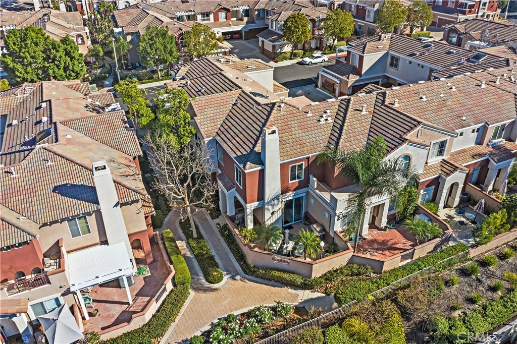 Enjoy the comforts of home in this delightfully quiet corner lot condo in the highly sought after Vineyard Community of Foothill Ranch that symbolizes South Orange County living unparalleled. This bright condo embodies the largest floor plan in the community. Boasting Custom Mohawk Hardwood Floors, Open Living Space accented with crown molding, built-in LED lighting, surround sound speakers, gas fireplace, and dual pane windows throughout. The Gourmet Kitchen boasts a large pantry with new shelving, quartz countertops, updated sink, faucet, and backsplash. The open living space leads to a large outdoor patio perfect for entertaining guests with a sunset ambiance. The attached 2 car garage features Epoxy floors, plenty of storage and workspace. Large upstairs Master Suite transcends elegance with a crafted barn door, walk-in closet with custom shelving, upgraded master bathroom with dual vanity and oversized relaxation bathtub. The guest bedrooms display privacy and plenty of natural light with views of the greenbelt. Vineyard's residents enjoy resort-style amenities including parks, pool/spa, & playground. Enjoy hiking/ biking in nearby Whiting Ranch Wilderness Park. Conveniently located close to award-winning schools, shopping, dining, and Movie Theater. Easy toll road & freeways access makes it a great location.