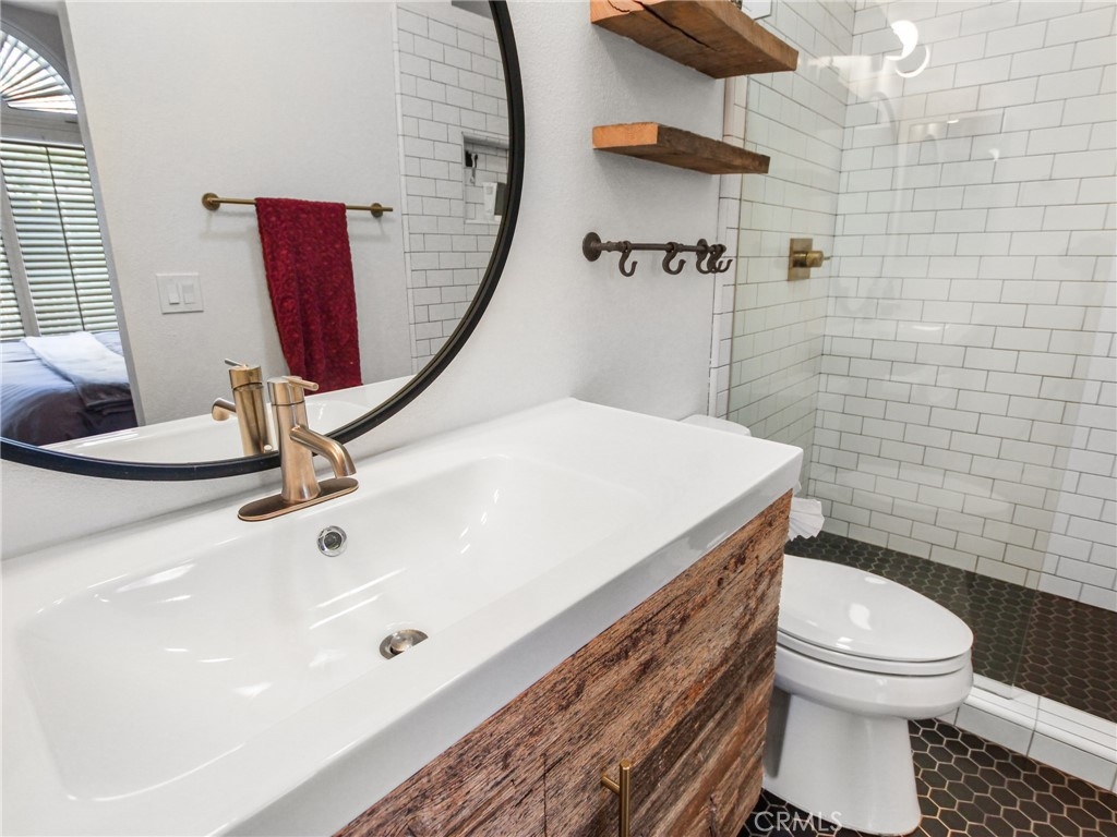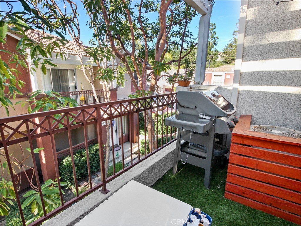 Welcome to your classy and modern, recently-upgraded new home! This 2-bedoom, 2-bath house is move-in ready. Begin with custom shutters and newer, wood laminate flooring throughout the home and modern-looking tile floors in the kitchen and bathrooms. Your contemporary kitchen features marble countertops, a stylish steel double sink, an upgraded gas range, and recessed lighting. Both bathrooms include tile walls in the bath/shower area, and the master boasts an upgraded vanity and a fun and space-saving farm door. The fireplace will keep you cozy during the winter and both bedrooms' ceiling light fans will keep you cool in the summer. When you need some air, just step out onto a balcony that looks out over your neighborhood's greenery. The updated NEST system will ensure you're secure, but there's really no need to worry: this home is situated in a dreamy Southern California community. Nestled near the Limestone Canyon Regional Park, your community features a pool, spa, and tot-lot and is located just a short stroll from shopping, dining, entertainment, numerous hiking and biking trails, and the award-winning Foothill Ranch Elementary School. Need to travel? The home also is just minutes from the 241 Toll Road, the 5 Freeway, and the Irvine Spectrum Center. What's not to love? The home includes a one car garage and a designated parking spot.