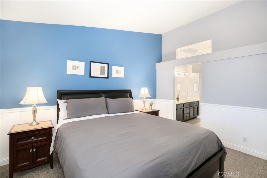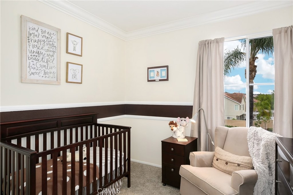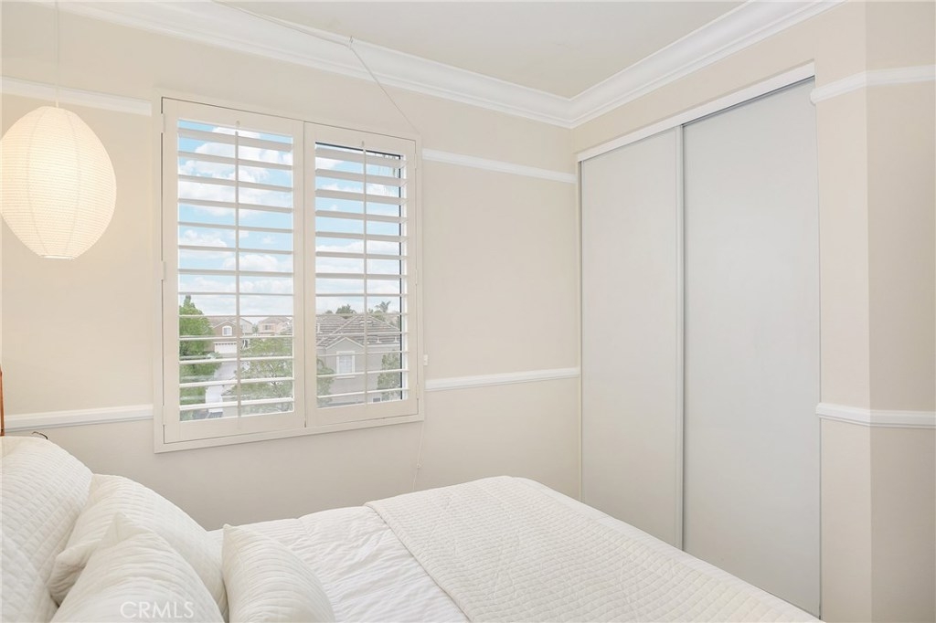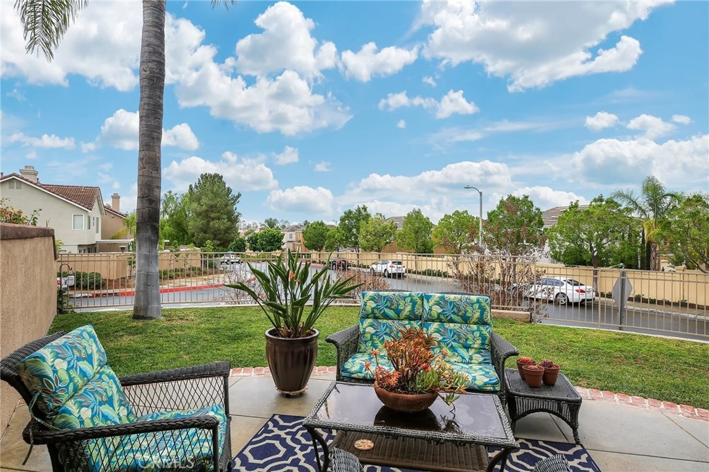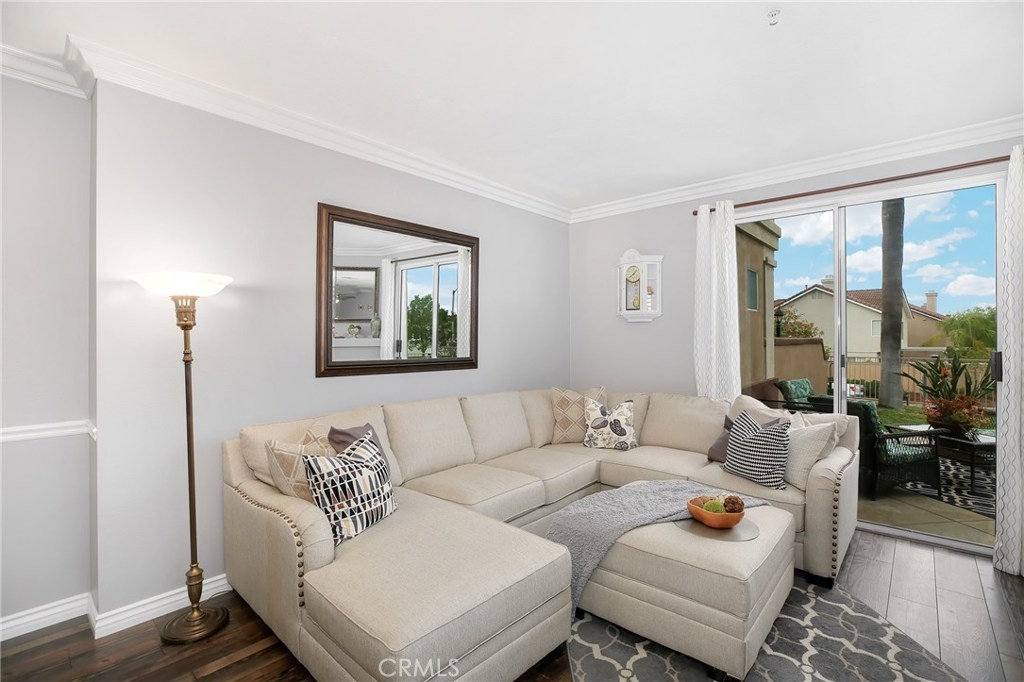 No detail has been spared in this magnificent, private corner lot in the sought after Vineyards tract of Foothill Ranch. Plantation shutters, crown molding, light-catching dual pane windows, newer carpet and rich wood laminate floors add to the elegance of the highly livable floor plan. The sumptuous kitchen is well appointed w/ exquisite quartz counters, subway tile backsplash, stainless steel appliances, breakfast nook and gorgeous views. The sizable living room flows seamlessly from the kitchen and features a cozy fireplace, sliding glass door to patio and a roomy dining space. Up the staircase, the spacious master suite welcomes w/ new plush carpet, vaulted ceilings, plantation shutters, wainscoting and modern paint colors. The spa-like master bathroom features a sizable walk-in closet w/ built-in organizers, dual sinks and soaking tub. The secondary bedrooms have plush carpet, crown molding, plantation shutters, spacious closets and share the full hall bathroom. Enjoy relaxing in the private backyard w/ spacious grass area, wrap around patio and stunning sunsets. Additional features include newer high efficiency A/C, indoor laundry room and convenient 2 car attached garage w/ epoxy flooring and plenty of room for storage. This resort style living also includes fantastic private community pool/spa and tot lot play area. Close proximity to acclaimed Foothill Ranch Elementary, hiking/biking (Whiting Ranch Wilderness Park) and access to 241 toll road. Won’t last long!