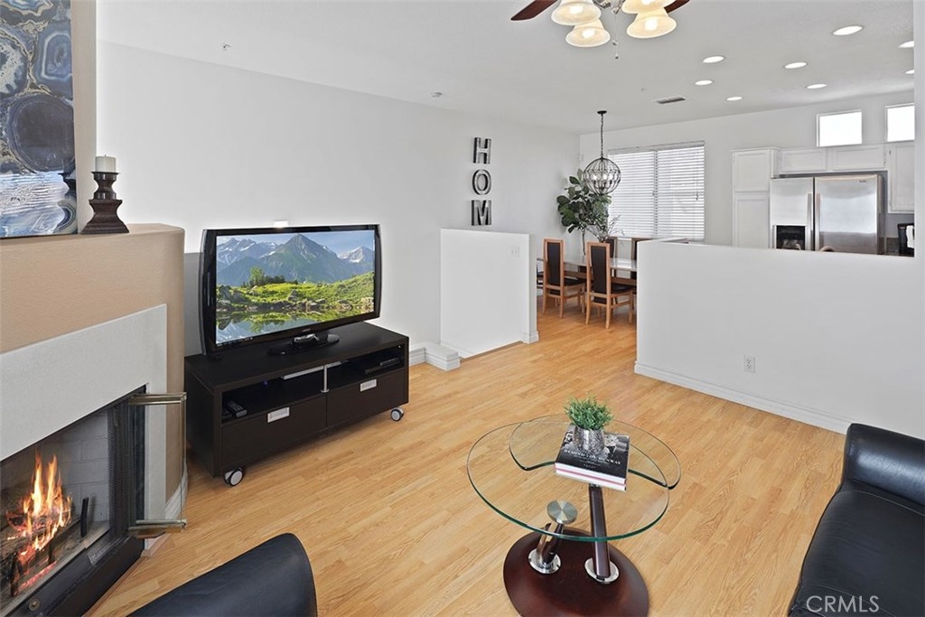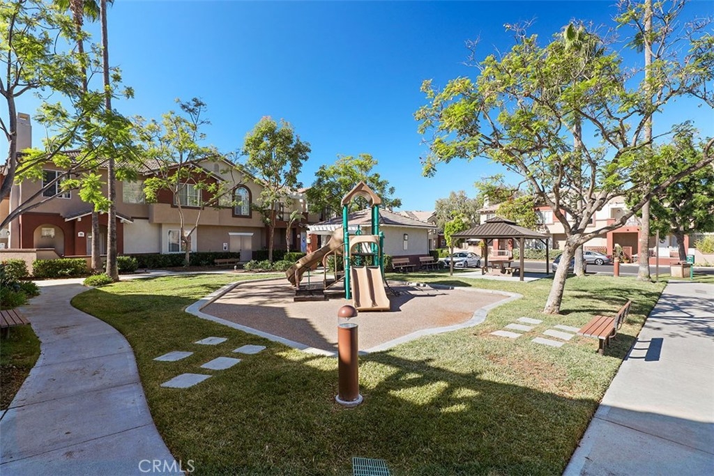 From the moment you arrive, you will absolutely love this beautiful, two-level condo situated in the Vineyards community of Foothill Ranch. The bright, modern kitchen opens to the dining area and living room, making entertaining friends and family a breeze. The living room has a gas log fireplace -- perfect for these autumn nights. The private balcony is ideal for morning coffee or evening barbecues. A gorgeous arched window and en suite bathroom adorn the master bedroom. Recessed lighting, designer paint, and wood floors throughout. The association offers beautifully manicured grounds with pool, spa, and children's playground. Parking is never an issue with the attached, one-car garage and additional, assigned parking space. Ideally located just minutes from the prized and highly rated Foothill Ranch Elementary and Foothill Ranch Towne Center, as well as restaurants and shopping. Hurry! Homes in this excellent area do not last!
