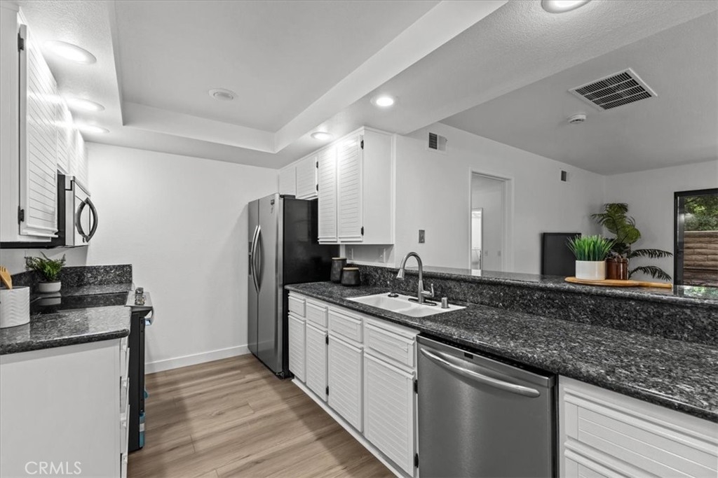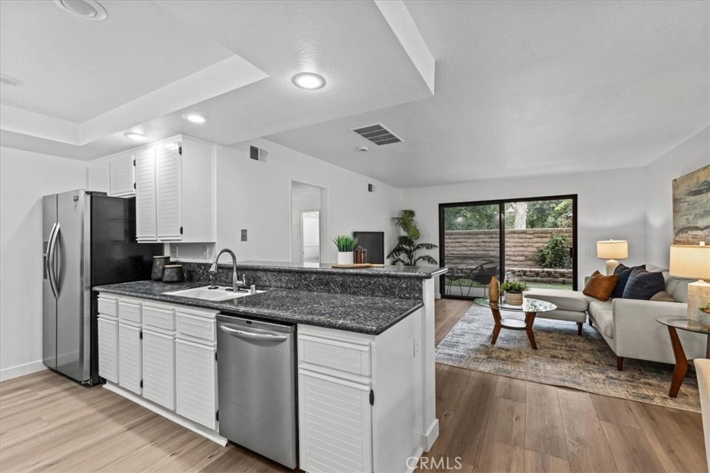 Experience the best in Lake Forest living! This charming lower-corner unit has been tastefully upgraded with room to still make it yours. It is a single-level home with two bedrooms, and two bathrooms and won’t last long! The open-concept living area glows with natural light pouring in from the sizable sliding glass door leading outside to a spacious backyard. Look forward to spending time on the spacious back patio with low-maintenance turf; perfect for family dinners, enjoying your morning coffee, or just relaxing while taking in the sunset skies. A single-car garage with a full driveway offers direct access to the home and an interior full-size laundry room. The kitchen is adorned with newly painted cabinets, stainless steel appliances, and granite countertops. The space is illuminated with recessed lighting. The primary suite includes a ton of natural light, a spacious walk-in closet, and a sliding door with access to your private backyard oasis. A second bedroom is perfect for guests, an office, or a workout room, the choice is yours. This community features a pool and spa a short walk from your front door. Low HOA dues, taxes & no Mello-Roos. Minutes to Irvine Spectrum's shops, dining, and businesses as well as just a stroll down the street to public transportation, grocery shopping, eateries, parks, and hiking trails. Whatever your pleasure, you will find it here!